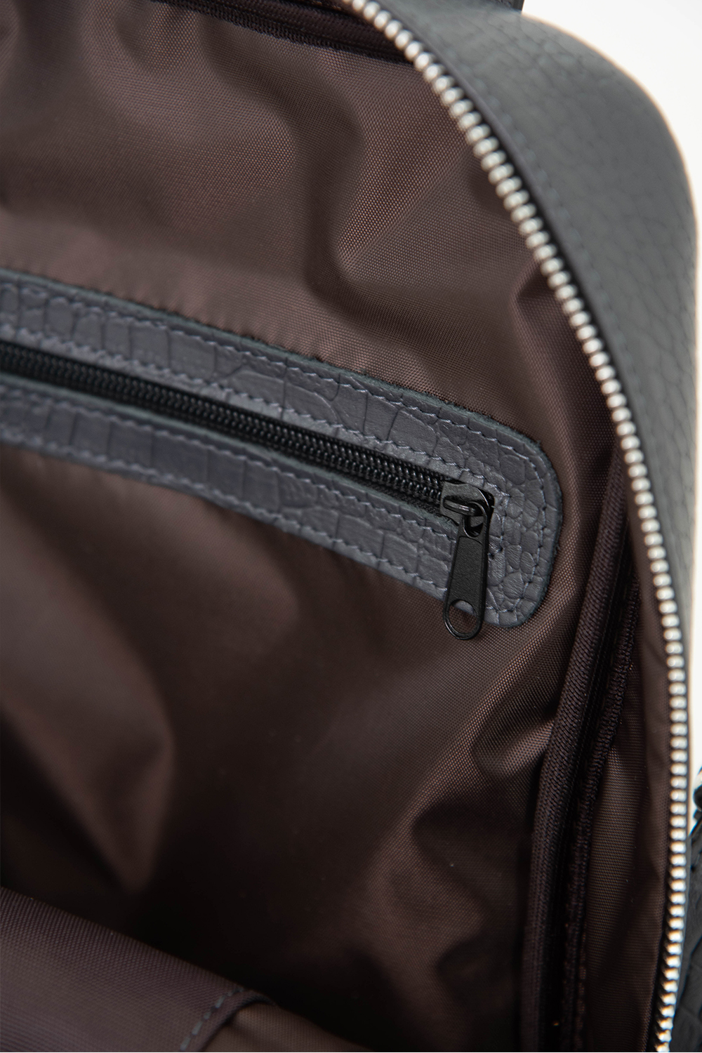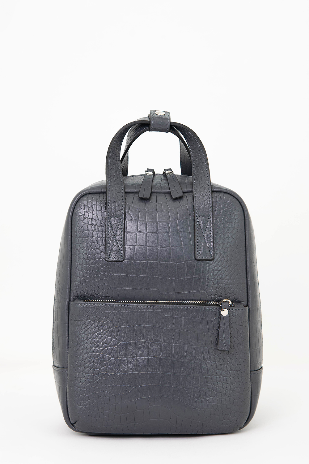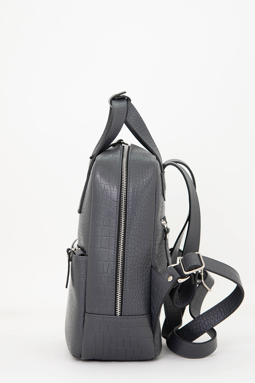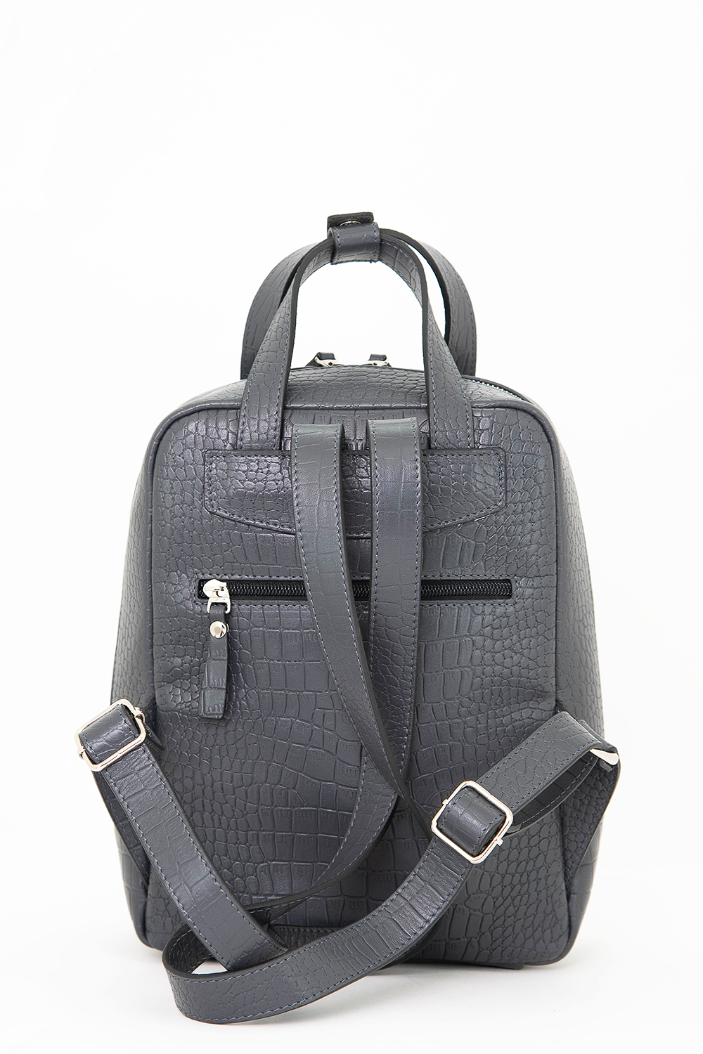 Сумка-рюкзак женская среднего размера. Рюкзак застегивается на молнию и имеет одно отделение. На передней стенке расположен карман на молнии. На задней стенке также есть карман на молнии. Лямки рюкзака регулируются по длине. Сумка-рюкзак на подкладке. Внутри сумки расположен карман на молнии из плотного материала и карман на молнии.