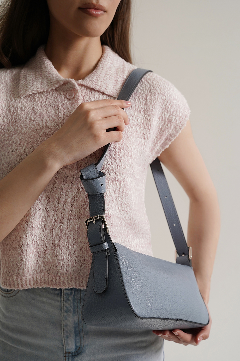 Сумка женская со съемным регулируемым ремнем через плечо. Сумка закрывается на молнию и имеет одно отделение. Сумка на подкладке. Внутри сумки карман на молнии.