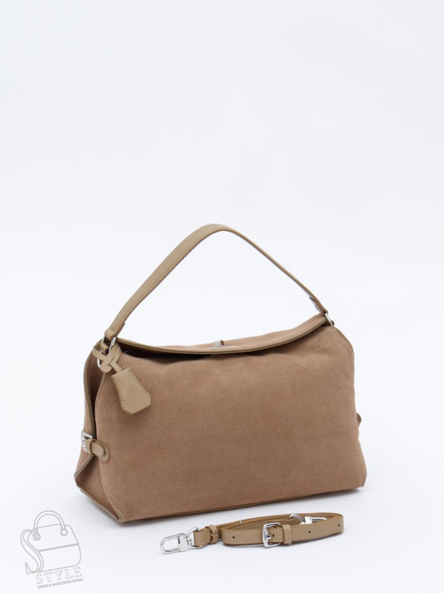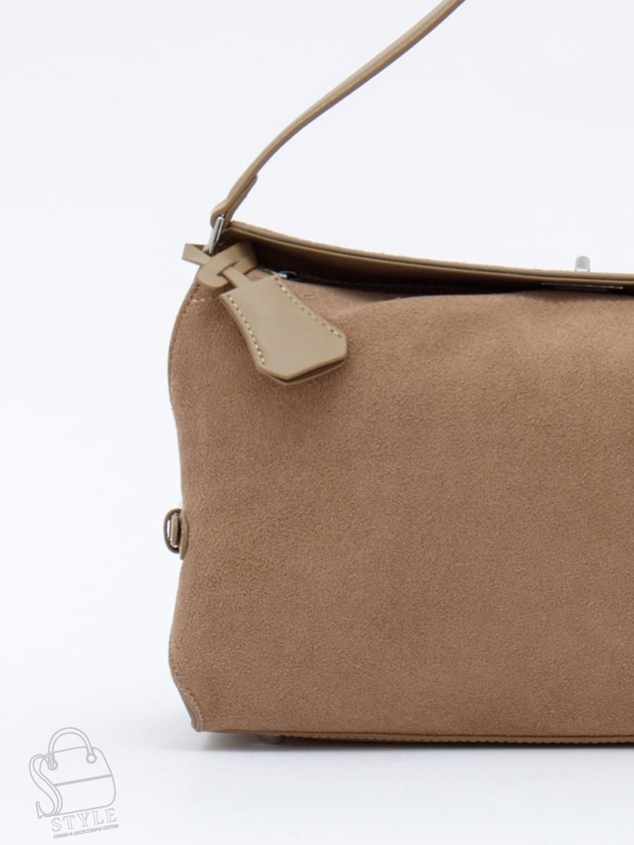 Модель с клапаном, выполнена из замши. Декорирована ремнями по бокам. Дополнена серебристой фурнитурой. Данная модель закрывается на клапан. Носится в руке или на плече. В комплекте имеется встроенная ручка и плечевой ремень с регулировкой длины. Каркас полужесткий.