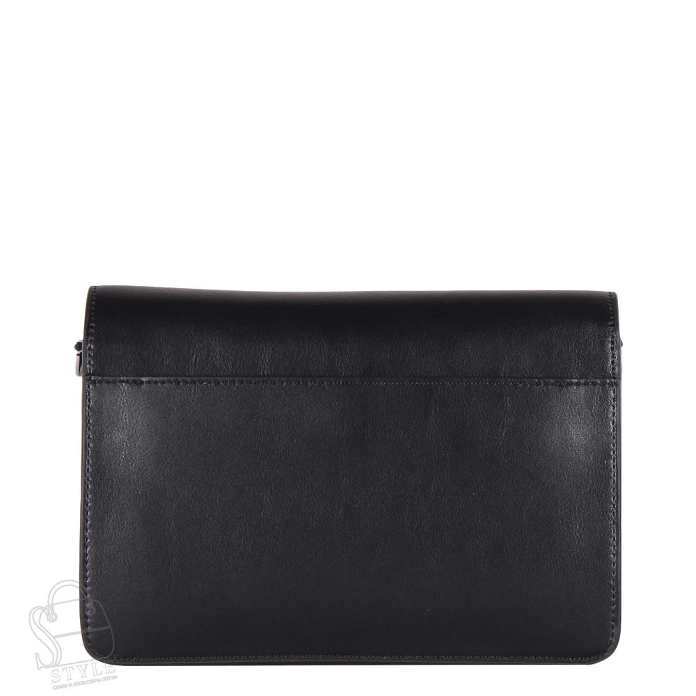 Модель закрывается клапаном, декорированным оригинальным металлическим украшением. Сумка закрывается клапаном на магнитные кнопки, под клапаном молния и два отделения. На задней панели карман на магнитной кнопке. Внутри подкладочный материал, на боковых стенках  открытый карман и карман на молнии. В комплекте тонкий, классический, регулируемый ремень.