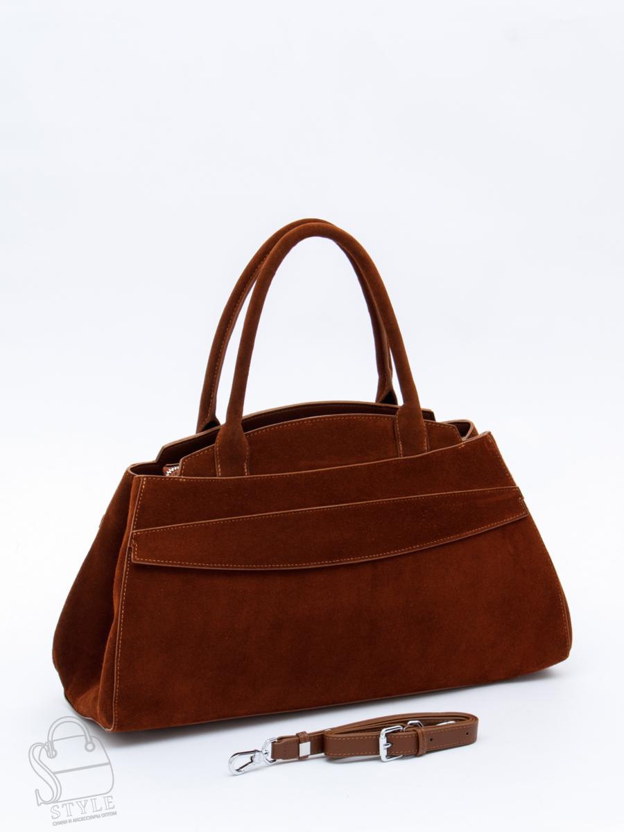 Вместительная сумка, выполнена из замши. Дополнена серебристой фурнитурой. Данная модель закрывается на молнию. Каркас жесткий. Носится в руке за встроенные ручки или на плече. В комплекте имеется съемный ремень с регулировкой длины. На дне предусмотрены ножки.