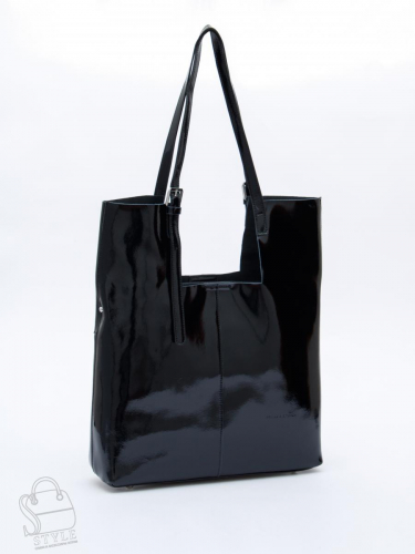 Вместительная сумка, выполнена из натуральной лаковой кожи. Дополнена серебристой фурнитурой. Данная модель закрывается на молнию. Носится в руке или на плече за встроенную ручку, которая регулируется по длине. Каркас полужесткий. На дне предусмотрены ножки.