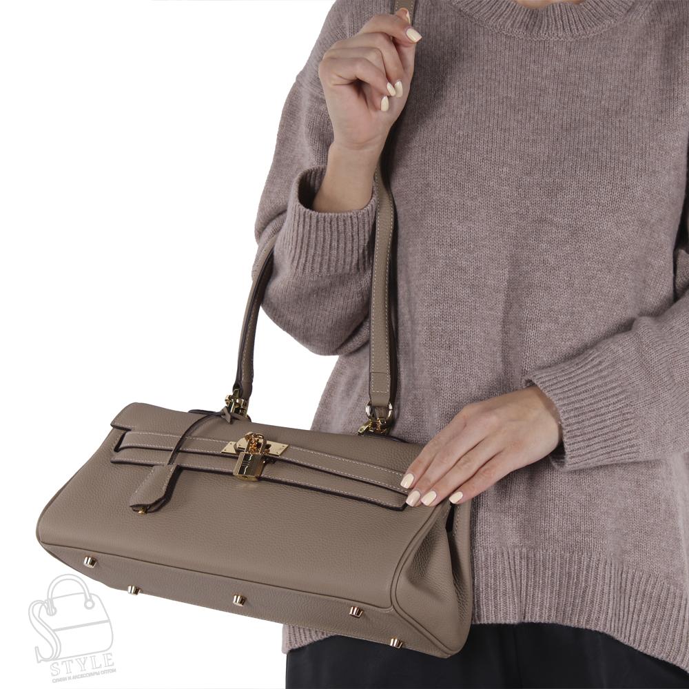 Актуальная базовая модель, выполнена из натуральной кожи. Декорирована деталями на передней части. Дополнена золотистой фурнитурой. Данная модель закрывается на клапан, носится в руке или на плече. В комплекте имеется ремень съемный с регулировкой длины и встроенная ручка. Каркас полужесткий. На дне предусмотрены ножки.