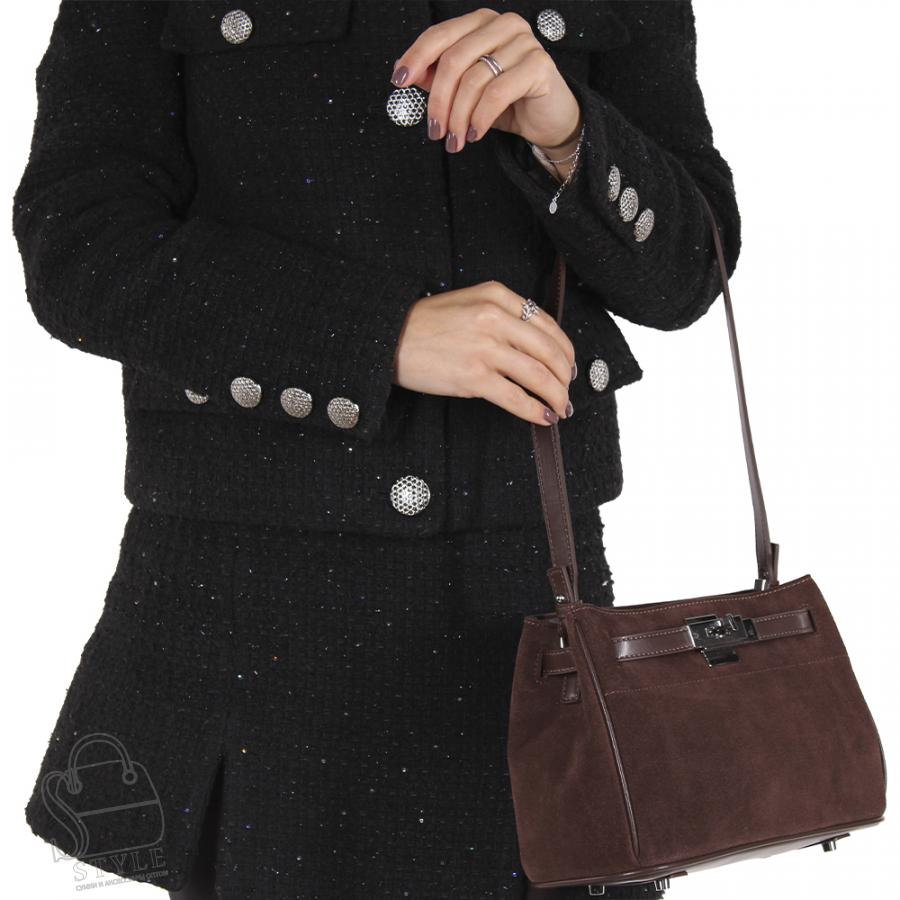 Сумка кросс-боди, выполнена из замши. Дополнена темной фурнитурой. Данная модель закрывается на кнопку, носится на плече или в руке. В комплекте имеется съемный ремень и удлиненная ручка. Каркас полужесткий. На дне предусмотрены ножки.