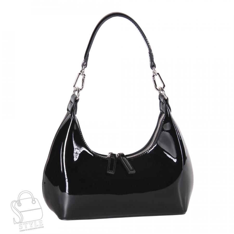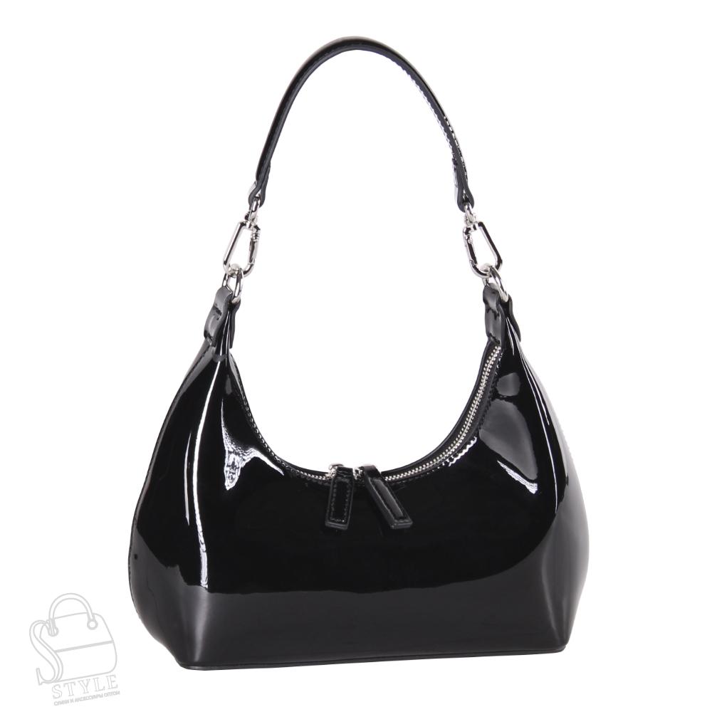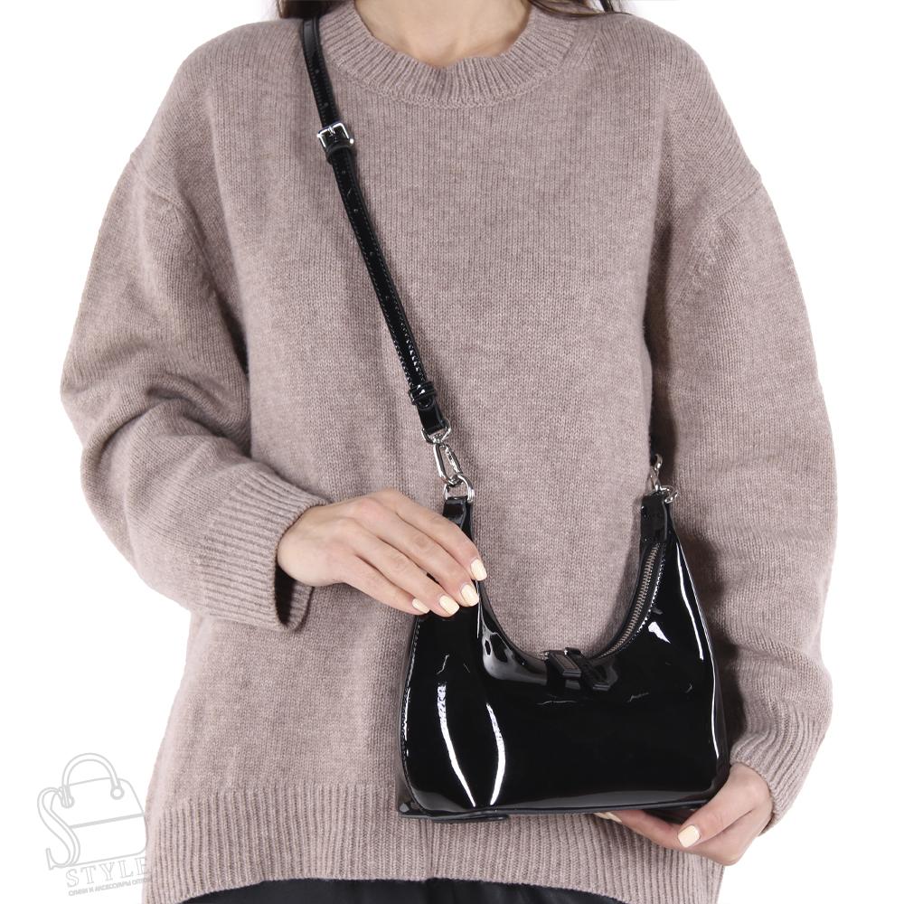Сумка выполнена из натуральной лаковой кожи.  Дополнена серебристой фурнитурой. Данная модель носится на плече или в руке за  ручку. Каркас сумки жесткий.  В комплекте короткий ремешок и плечевой ремешок с регулировкой длины.