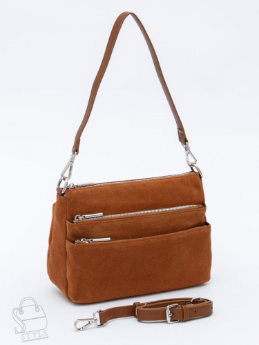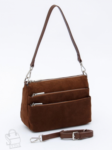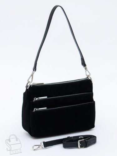 Функциональная сумка, выполнена из замши. Дополнена серебристой фурнитурой. Данная модель закрывается на молнию, носится в руке или на плече. В комплекте имеется съемная удлиненная ручка и плечевой ремень с регулировкой длины. Каркас полужесткий.