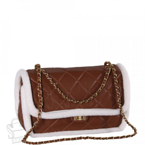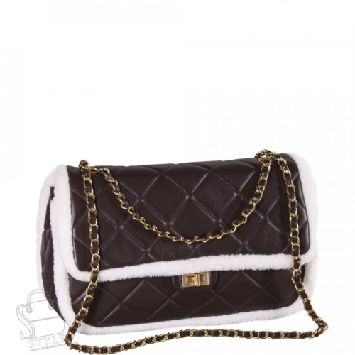 Сумка со стежкой, выполнена из натуральной кожи. Декорирована экомехом. Дополнена золотистой фурнитурой. Данная модель закрывается на клапан, носится в руке за ручки. Каркас полужесткий. Ручка-цепочка перетягивается.
