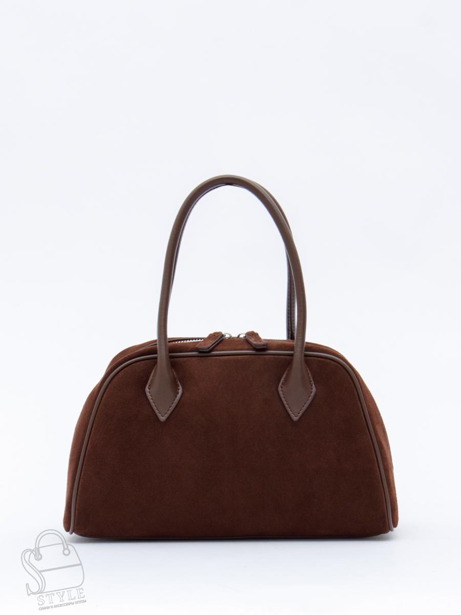 Базовая сумка в лаконичном дизайне, выполнена из замши. Дополнена серебристой фурнитурой. Данная модель закрывается на  молнию. Носится в руке за встроенные  ручки или на плече. В комплекте имеется съемный плечевой ремень с регулировкой длины. Каркас полужесткий.