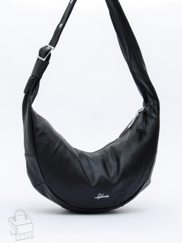 Сумка-хобо, выполнена из кожи. Декорирована логотипом на передней части. Дополнена серебристой фурнитурой. Данная модель закрывается на молнию, носится в руке или на плече за встроенный ремень, который регулируется по длине. Каркас мягкий.
