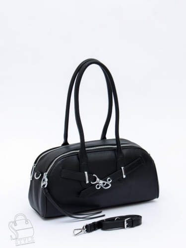 Базовая сумка, выполнена из натуральной лаковой кожи. Декорирована контрастными вставками. Дополнена серебристой фурнитурой. Данная модель закрывается на удлинённую молнию, которая фиксируется кнопками. Носится в руке за встроенные ручки или на плече за съемный ремень с регулировкой длины. Каркас полужесткий. На дне предусмотрены ножки.