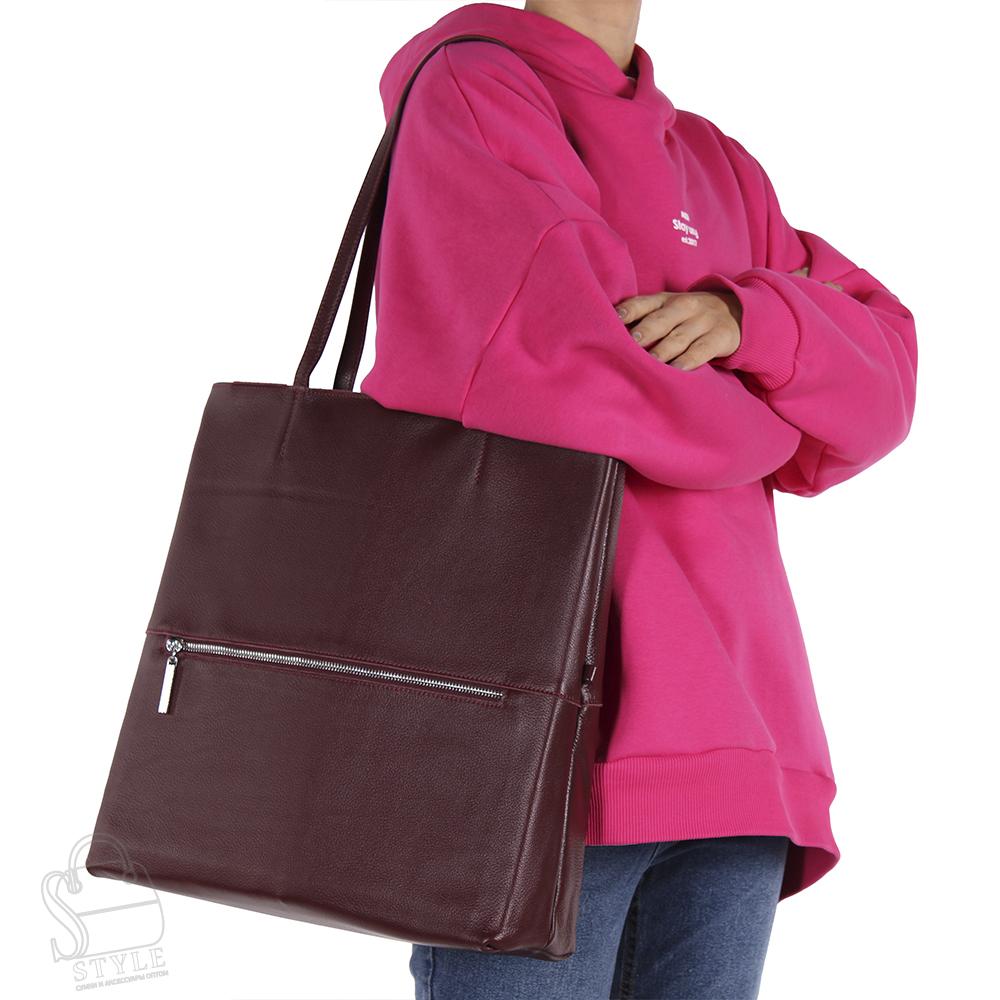 Сумка-шоппер, выполнена из натуральной кожи.  Дополнена серебристой фурнитурой. Данная модель закрывается на молнию, носится в руке или на плече. Имеются встроенные удлиненные ручки. Каркас мягкий.