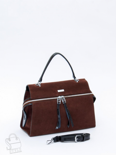 Стильная модель, выполнена из замши. Декорирована "собачками". Дополнена серебристой фурнитурой. Данная модель закрывается на удлинённую молнию, которая фиксируется по бокам сумки. Носится в руке за встроенную ручку. Или сумка носится на плече, в комплекте имеется съемный ремень с регулировкой длины. Каркас полужесткий. На дне предусмотрены ножки.
