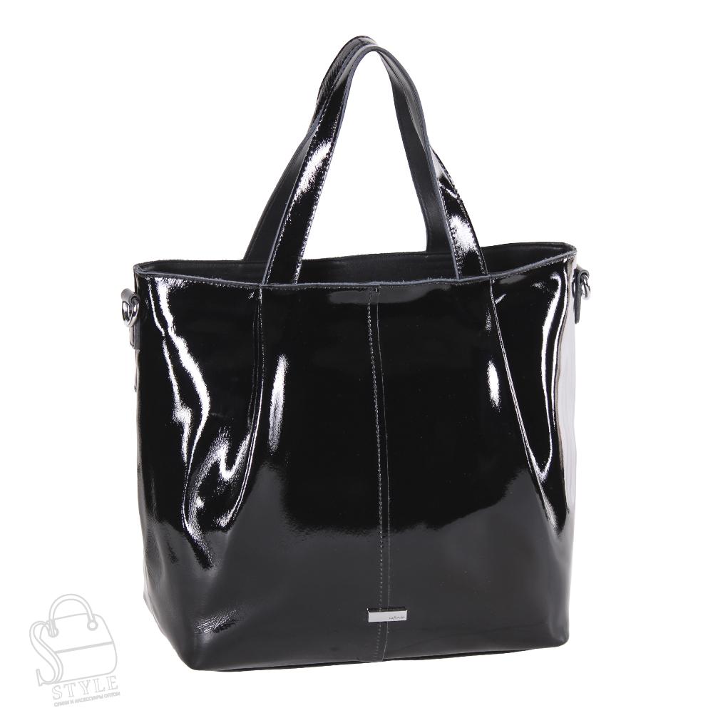 Вместительная модель, выполнена из натуральной лаковой кожи.  Дополнена серебристой фурнитурой. Данная модель закрывается на молнию, носится на плече или в руке. В комплекте имеется ремень с регулировкой длинны и короткие ручки встроенные. Каркас полужесткий.