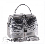 Модель кросс-боди, выполнена из натуральной кожи. Дополнена серебристой фурнитурой. Данная модель закрывается на молнии. Каркас полужесткий. В комплекте съемный ремень с регулировкой длины.