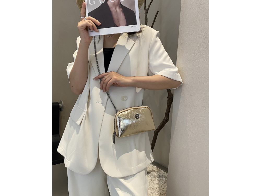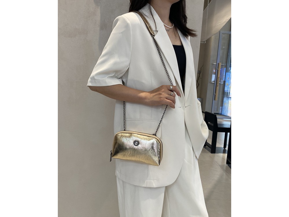 Маленькая сумочка косметичка или клатч. Из натуральной кожи. Отличный вариант для мероприятий или похода в театр. У нее есть цепочка которая снимается. Упакована в фирменный мешок. Внутри 2 отделения , в середине карман на молнии.