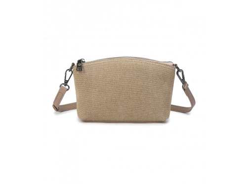 Сумка женская из натуральной кожи, лицевая часть которой обшита рогожкой. В комплекте кожаный ремень с возможностью регулировки.
