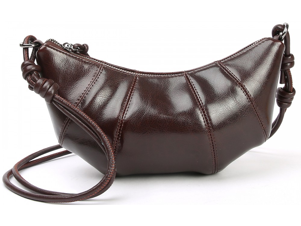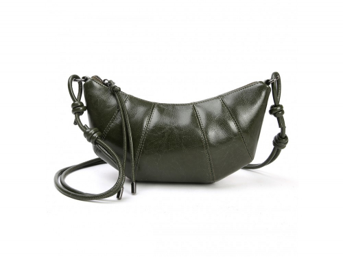 Сумка из натуральной кожи с длинным ремешком на плечо. Одно основное отделение застегивается на молнию. Внутри: два кармана для аксессуаров.