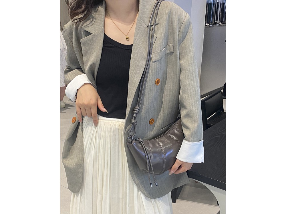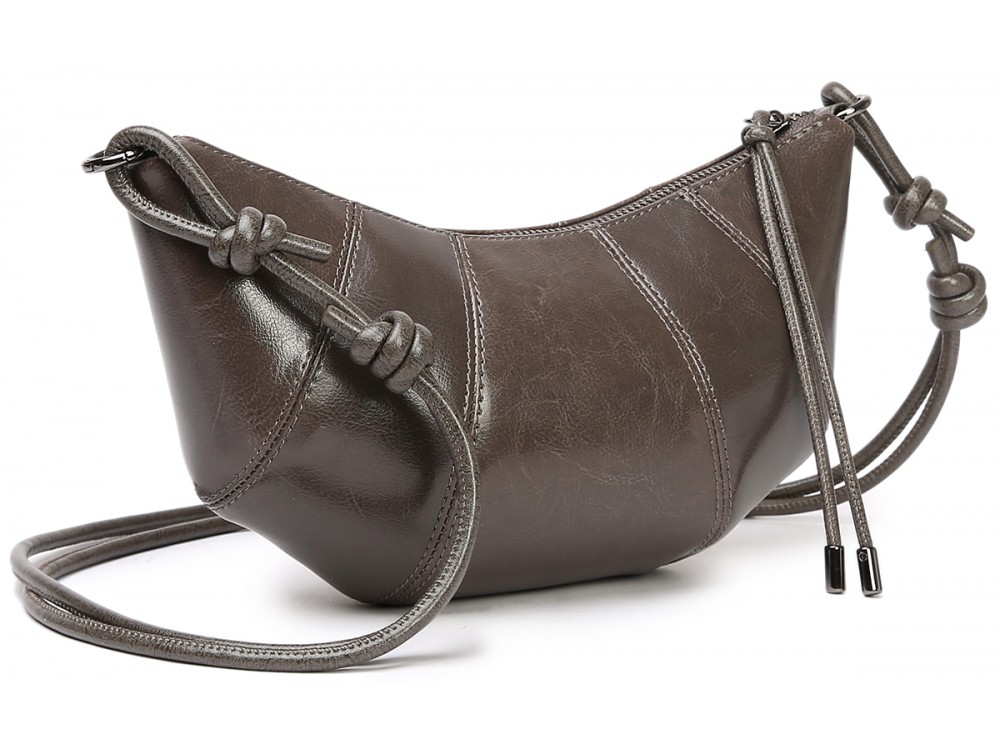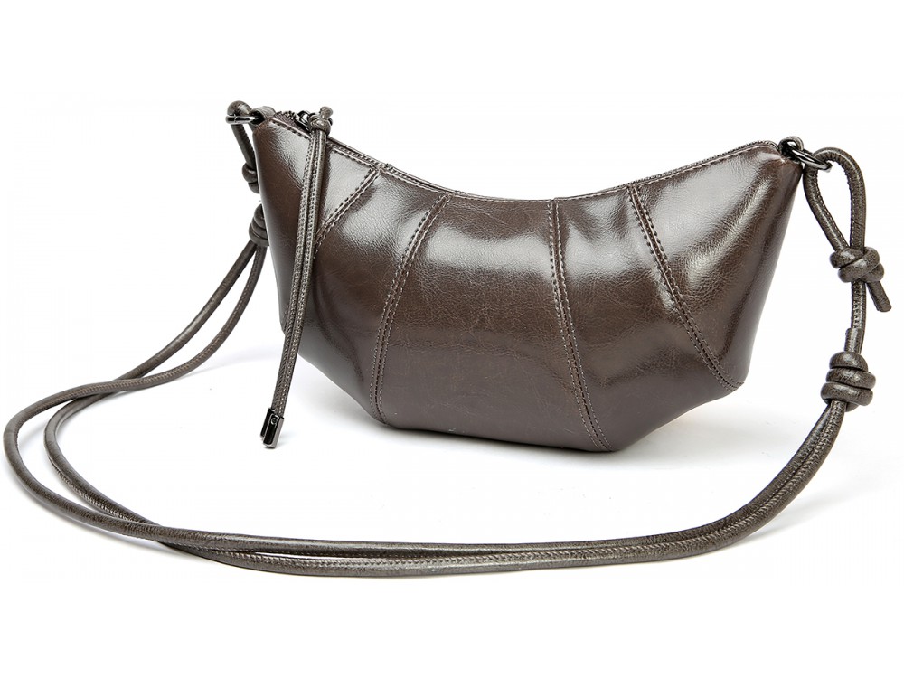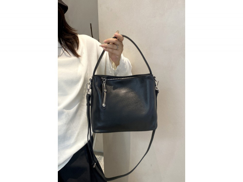 Сумка из натуральной кожи с длинным ремешком на плечо. Одно основное отделение застегивается на молнию. Внутри: два кармана для аксессуаров.