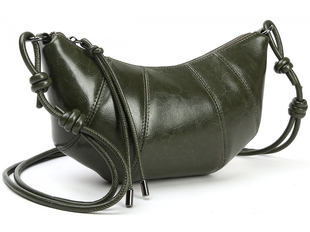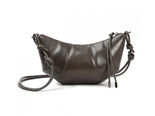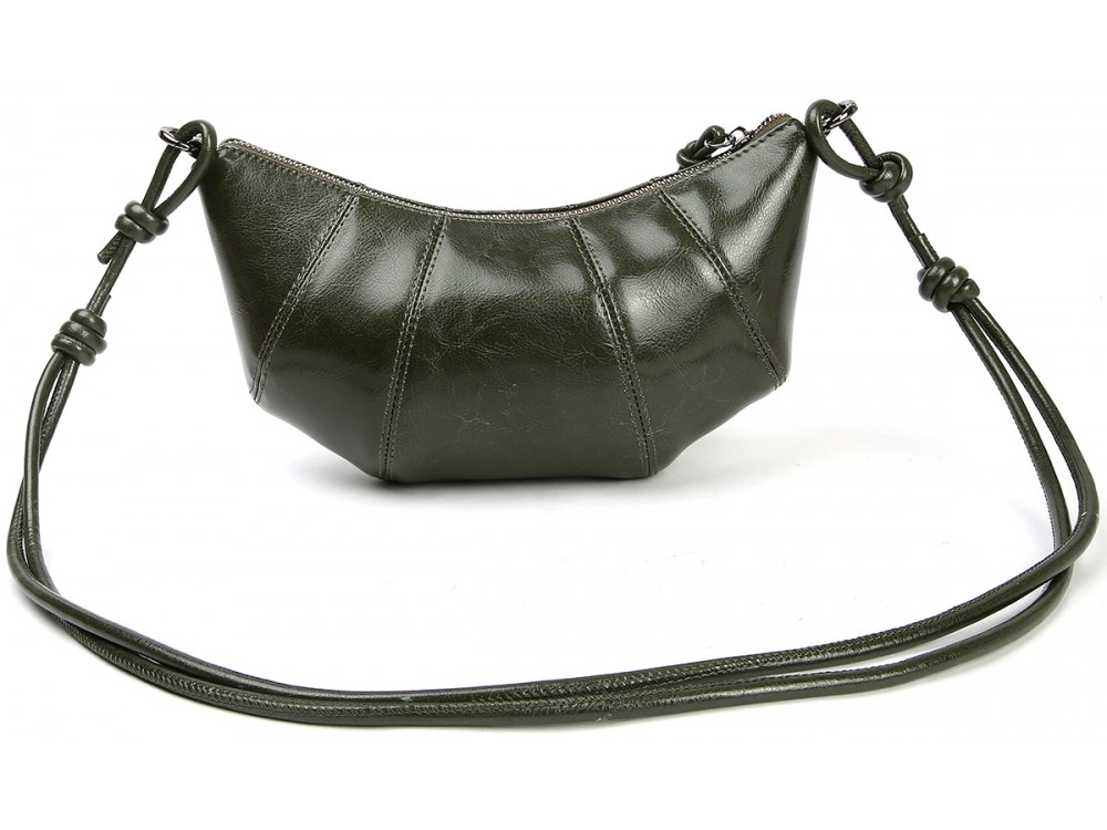 Сумка из натуральной кожи с длинным ремешком на плечо. Одно основное отделение застегивается на молнию. Внутри: два кармана для аксессуаров.