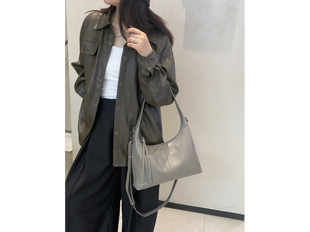 Описание: сумка из натуральной кожи на одной короткой ручке, кожаный длинный ремень в комплекте.
