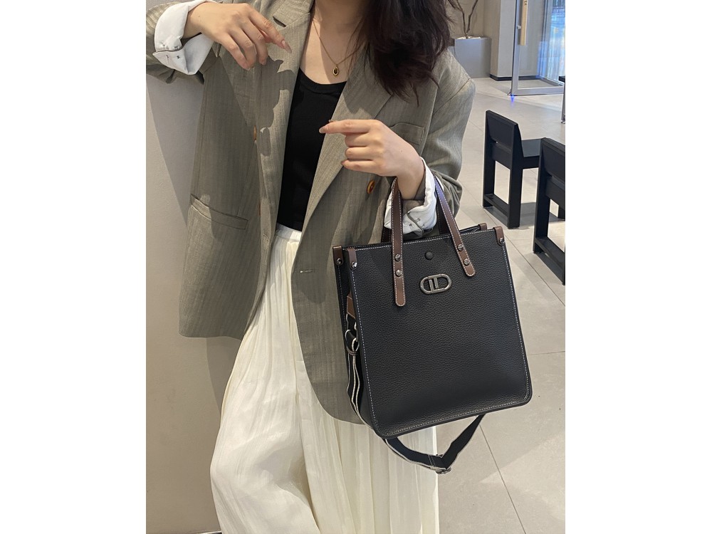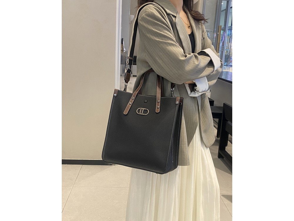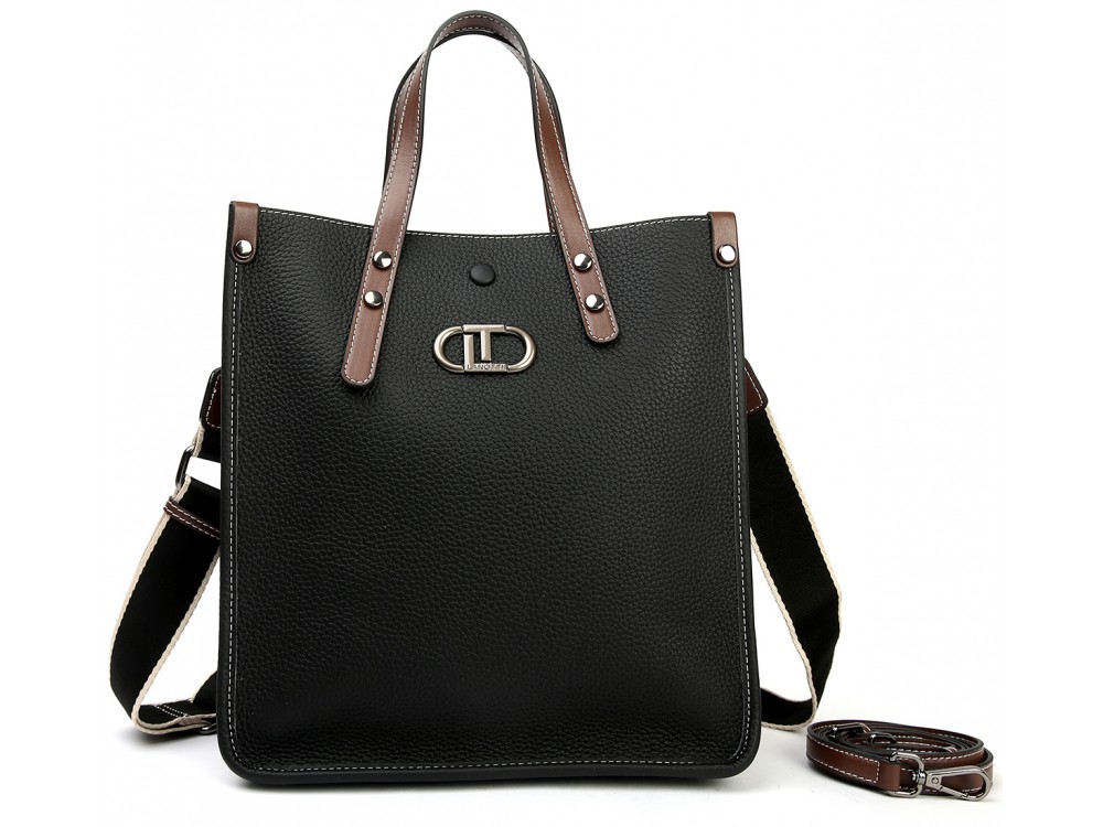 Две короткие ручки. Текстильный ремень на плечо + длинный кожаный ремень с возможностью регулировки. Три основаных отделения. Одно застегивается на молнию + внутри карман для телефона, дополнительный карман для аксессуаров на молнии. Два других отделения застегиваются на магнитную клепку.