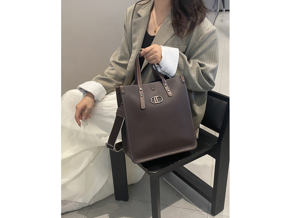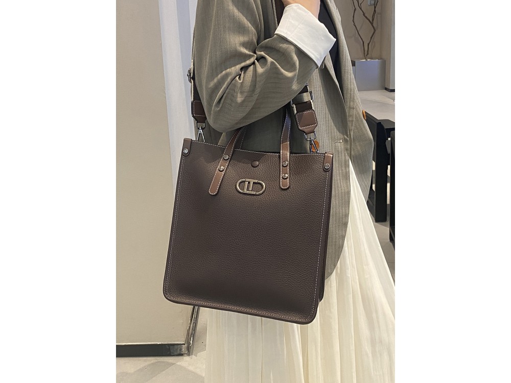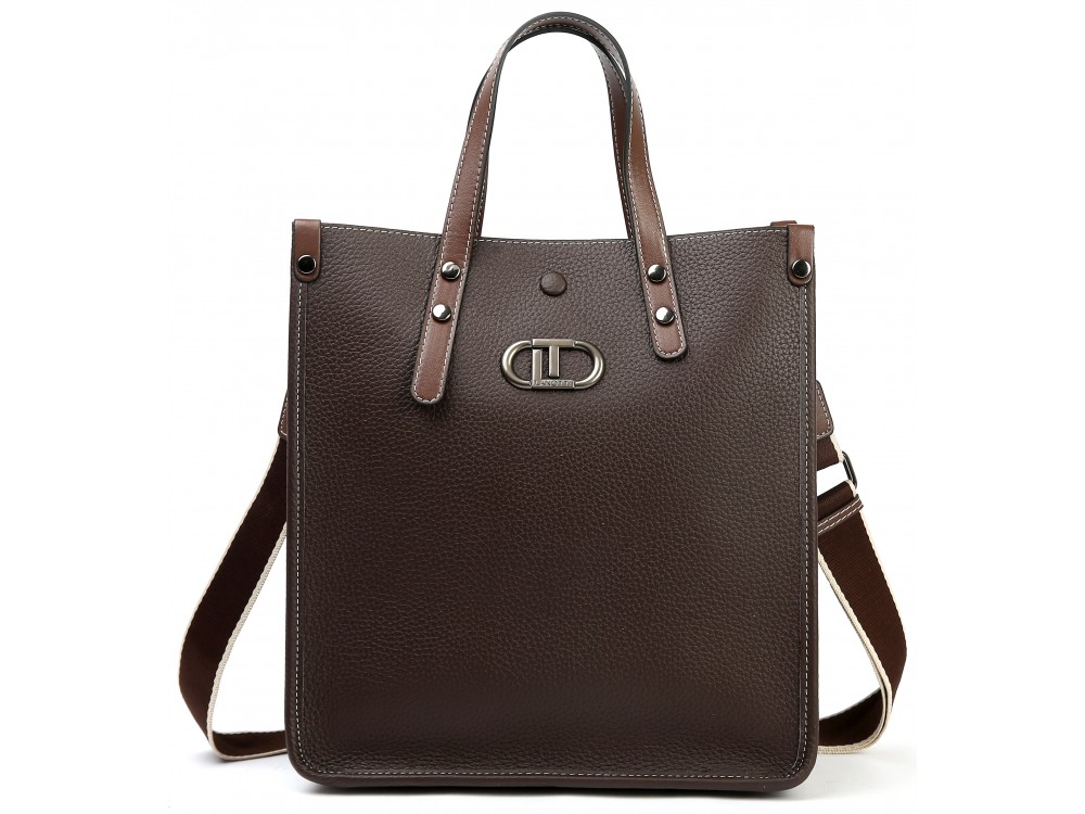 Две короткие ручки. Текстильный ремень на плечо + длинный кожаный ремень с возможностью регулировки. Три основаных отделения. Одно застегивается на молнию + внутри карман для телефона, дополнительный карман для аксессуаров на молнии. Два других отделения застегиваются на магнитную клепку.