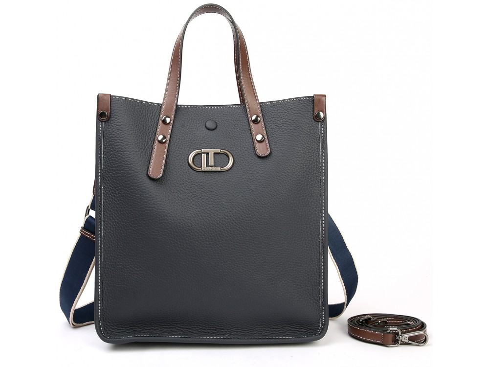 Две короткие ручки. Текстильный ремень на плечо + длинный кожаный ремень с возможностью регулировки. Три основаных отделения. Одно застегивается на молнию + внутри карман для телефона, дополнительный карман для аксессуаров на молнии. Два других отделения застегиваются на магнитную клепку.