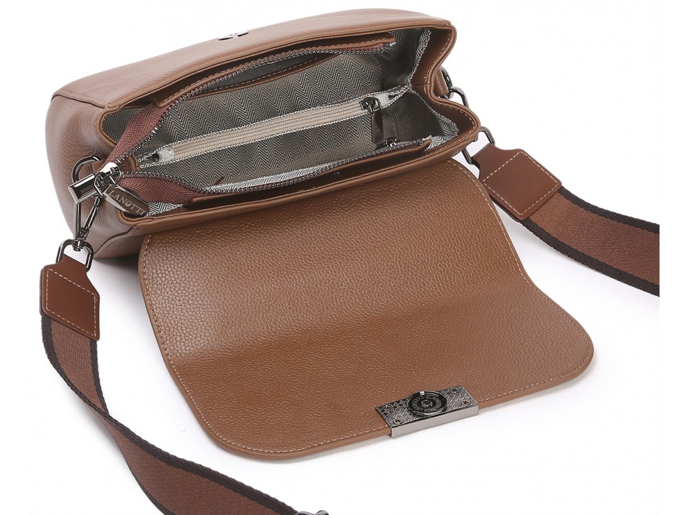 Сумка женская кожаная черная – это элегантно, стильно и удобно. Она позволит держать все важные и нужные вещи под рукой и в безопасности. Вашему вниманию представлена сумка в модном дизайне и по привлекательной цене. Сумка кросс-боди с контрастной коричневой ручкой является трендом осени 2023 года. Именно поэтому она обязана быть в гардеробе каждой модницы. Стильный деловой аксессуар придаст вашему повседневному или торжественному образу особый шарм и изысканность. Сумочка легкая, компактная, но при этом вместительная. Все самое необходимое поместится и в этой модели. Представленная кросс-боди имеет одно просторное отделение и два кармана внутри – открытый и на молнии. Такая женская сумочка из натуральной кожи пригодится на прогулке, в путешествии, для выхода в кино или ресторан. Она так же гармонично смотрится с вечерним платьем, строгим костюмом или молодежным луком. Дизайнерские стильные модели абсолютно все выглядят солидно и респектабельно. Деловой портфель пошит аккуратно и просто, не имеет изъянов. Cross-body изготовлена из мягкой, но прочной натуральной кожи. Благодаря этому она прослужит вам не один сезон и всегда будет выглядеть как новая. Модель не боится дождя, снега, палящего солнца. Берите ее с собой в любую погоду! Классическая, базовая, элегантная кросс-боди бренда Lanotti представлена в черном, зеленом и цвете слоновая кость. Стильные тоут выполнена из натуральной кожи, которая хорошо держит форму. Прекрасно подходит для повседневной носки, в офис, школу, на свадьбу или свидание. Бренд Lannotti следит за новинками главных модных домов Европы и Азии , чтобы наши покупатели имели возможность приобрести экземпляры не уступающие по стилю и качеству Hermes Furla Fendi Dr. Koffer Christian Dior Louis Vuitton Guess Zanellato Michael Kors Cromia Gucci Prada Bottega Veneta Marc Jacobs Chanel.Если Вы цените качество других российских производителей то бренд Lanotti Вас порадует.