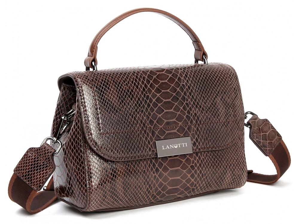 Сумка женская Lanotti 9252z/коричневый лаковый питон полностью