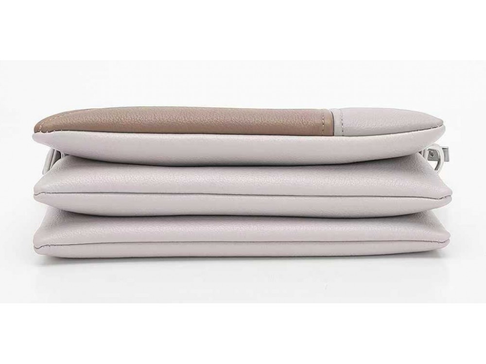 Описание: три автономных отделения, которые видны на боковом и нижнем ракурсе. Благодаря продуманной конструкции, сумка остаётся стройной даже при полной загрузке. Подходит для ежедневных дел, поездок и прогулок.