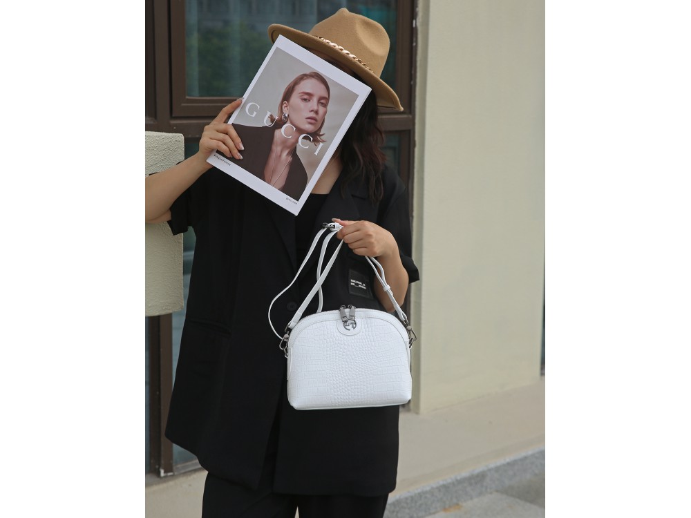 Сумка женская из натуральной кожи с регулируемым ремнём, с помощью которого можно носить сумку на плече или через плечо. Внури сумки одно основное отделение с дополнительными карманами для важных мелочей