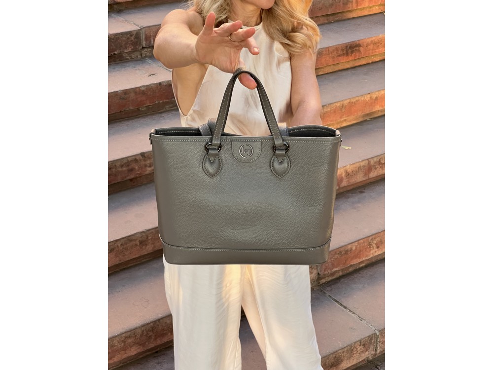 Сумка-шоппер с короткими и длинными ручками. Внутри сумки съёмный органгайзер на молнии, который крепится кнопками.