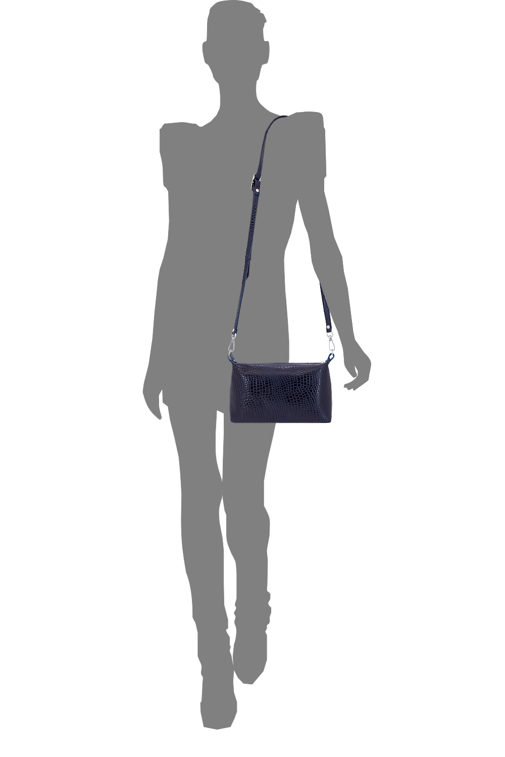 Сумка женская небольшого размера со съемным регулируемым ремнем через плечо. Сумка застегивается на молнию и имеет одно отделение. На задней стенке расположен карман на молнии. Сумка на подкладке. Внутри сумка имеет карман на молнии и накладной карман для мобильного телефона и визиток.