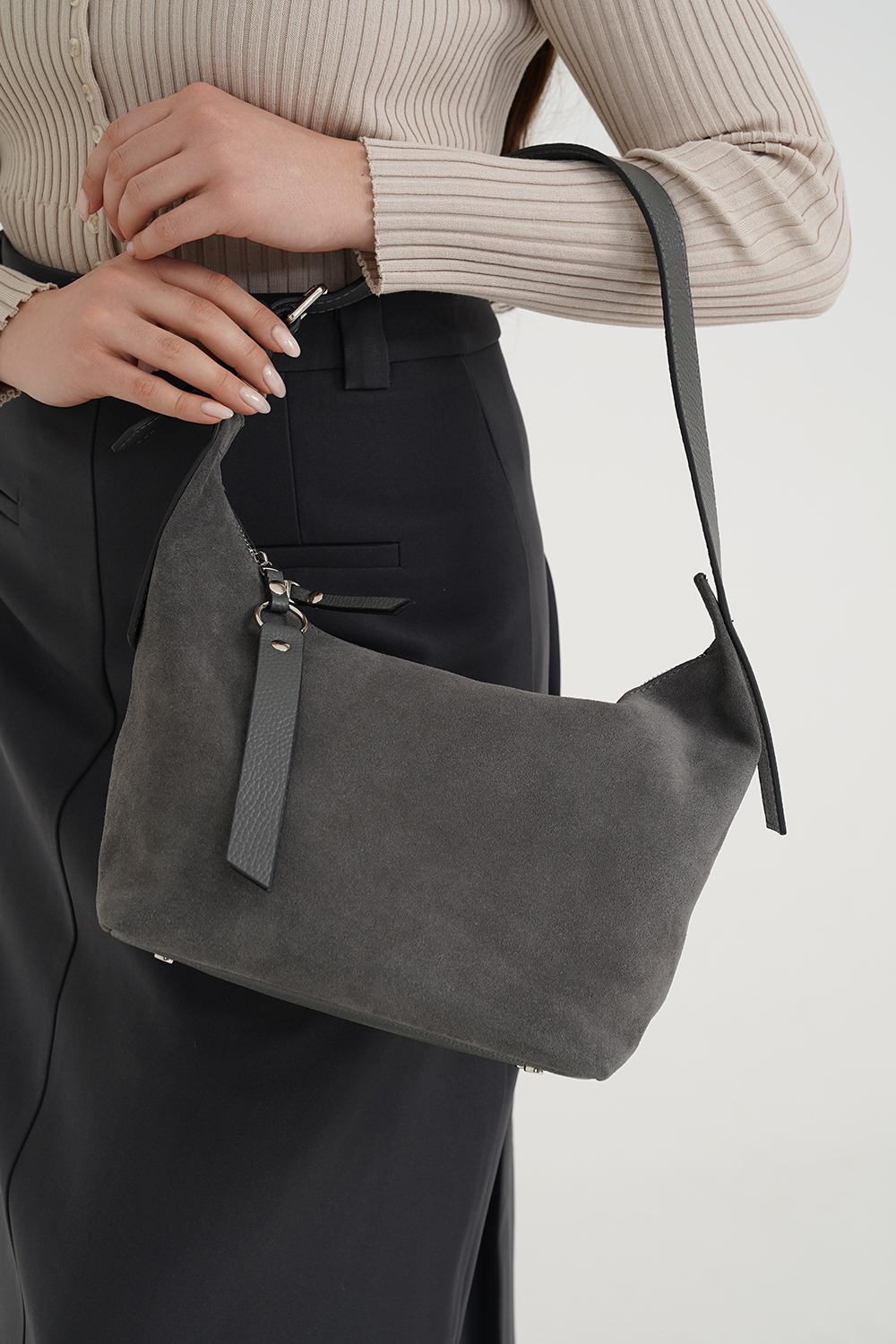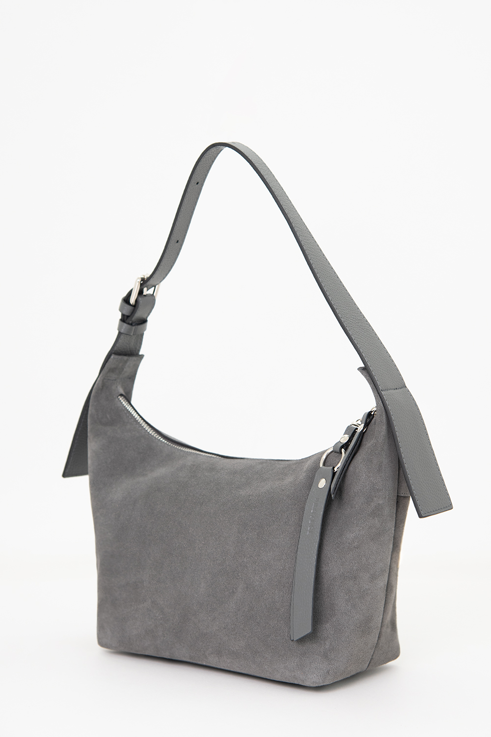 Сумка женская мягкой формы. Ручка регулируется по длине. Застегивается на молнию и имеет одно отделение. На задней стенке расположен карман на молнии. Сумка на подкладке. Внутри сумки карман на молнии и накладной карман на молнии "карман в кармане". Металлические ножки для защиты дна сумки. Декорирована пуллерами.