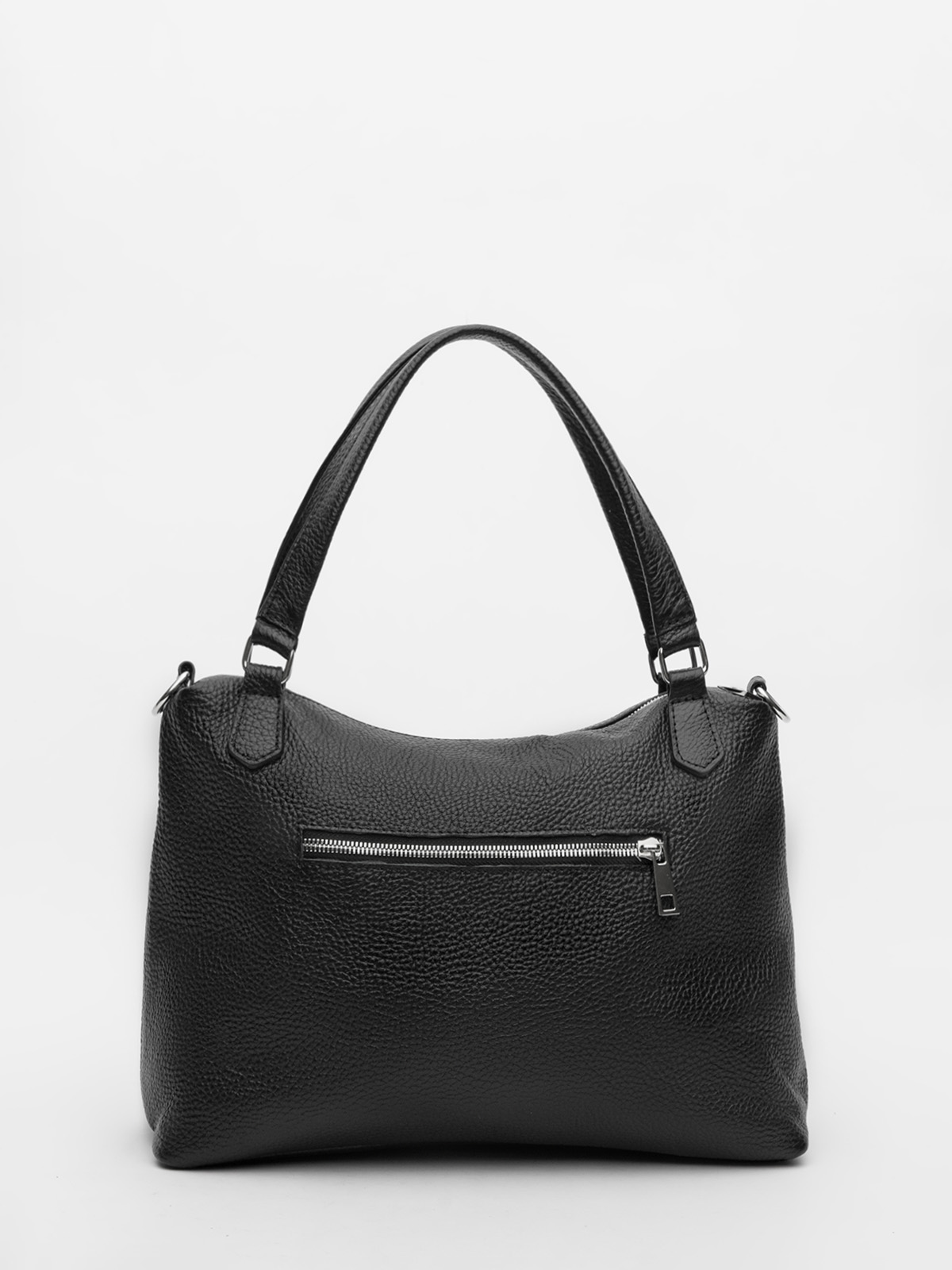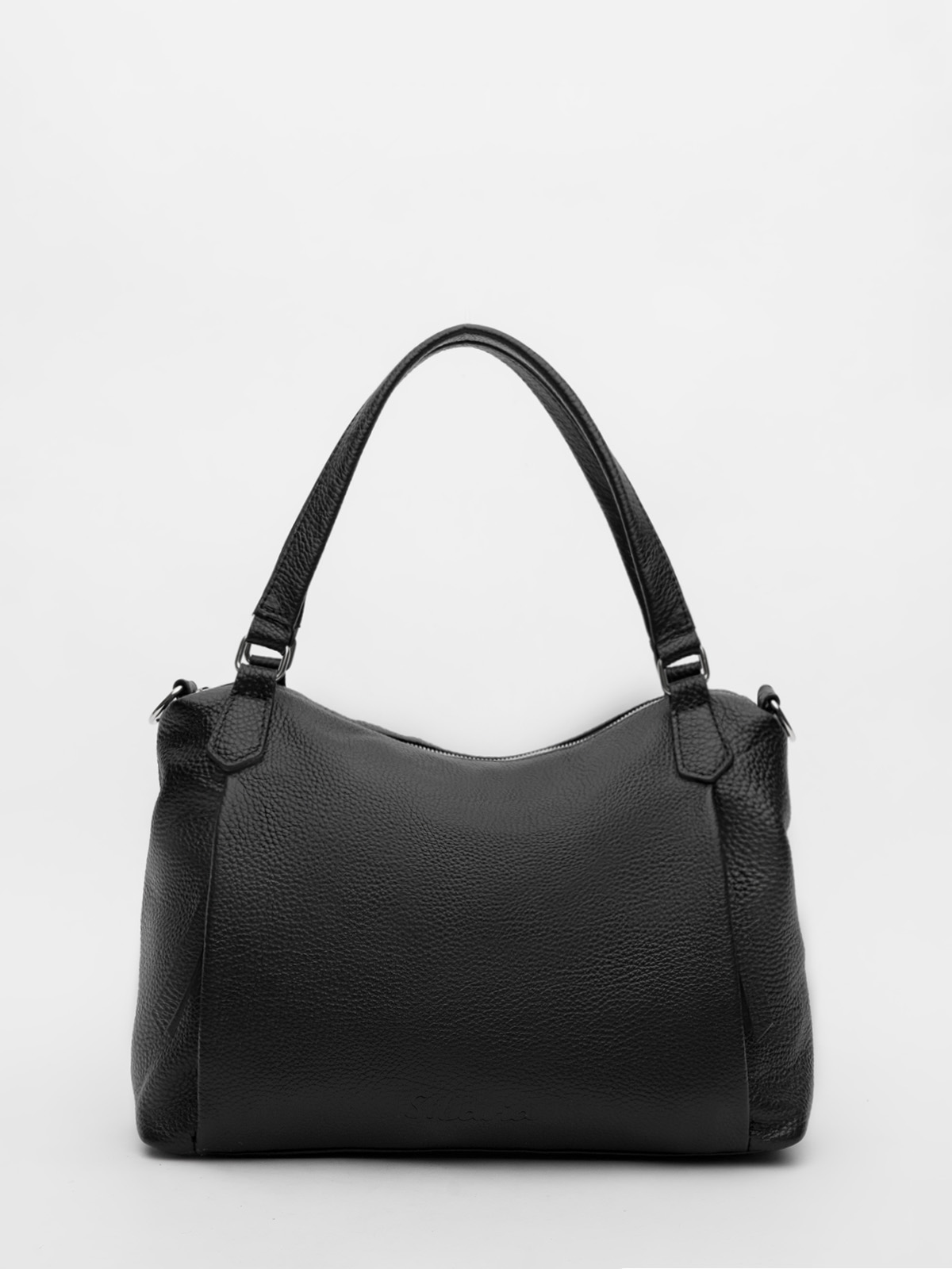 Элегантная женская сумка-тоут среднего размера из натуральной кожи с двумя удобными ручками для комфортного ношения. Регулируемый ремень с пряжкой позволяет менять длину и носить её на плече или в руках. Внутри просторное основное отделение со стандартными карманами и дополнительный накладной карман на молнии для мелочей. На передней части сумки стильное тиснение по низу, придающее модели изысканный акцент. Идеальный выбор для повседневного образа, сочетающий практичность и классический дизайн.