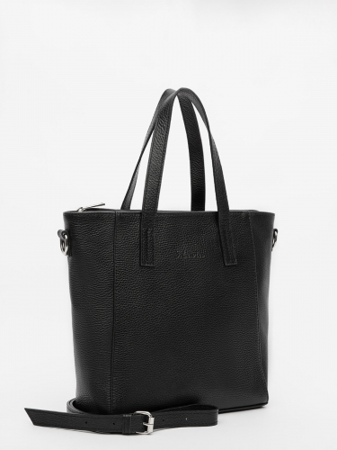 Элегантная женская сумка-тоут среднего размера из натуральной кожи с двумя удобными ручками для комфортного ношения. Регулируемый ремень с пряжкой позволяет менять длину и носить её на плече или в руках. Внутри просторное основное отделение со стандартными карманами и дополнительный накладной карман на молнии для мелочей. На передней части сумки стильное тиснение по низу, придающее модели изысканный акцент. Идеальный выбор для повседневного образа, сочетающий практичность и классический дизайн.