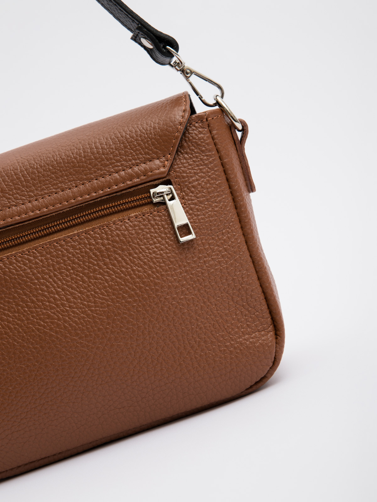 Миниатюрный кросс-боди в стиле S.Lavia из двух видов натуральной кожи.. Компактная модель с короткой ручкой и регулируемым ремнём на кобурных кнопках предлагает два варианта ношения. Двойная защита основного отделения: клапан на магнитах и молния. Внутри — два стандартных кармана, снаружи — удобный задний карман на молнии. Переднюю часть украшает металлический декоративный элемент. Идеальный выбор для тех, кто ценит лаконичность, функциональность и узнаваемые детали бренда.