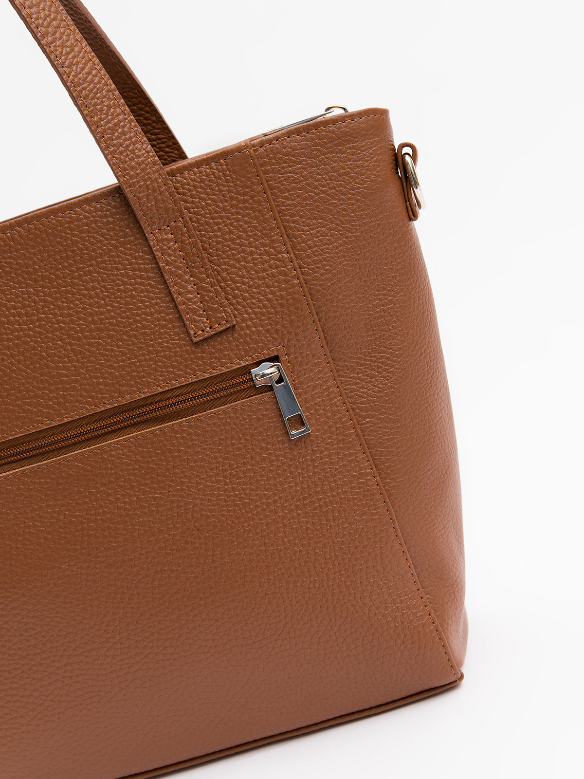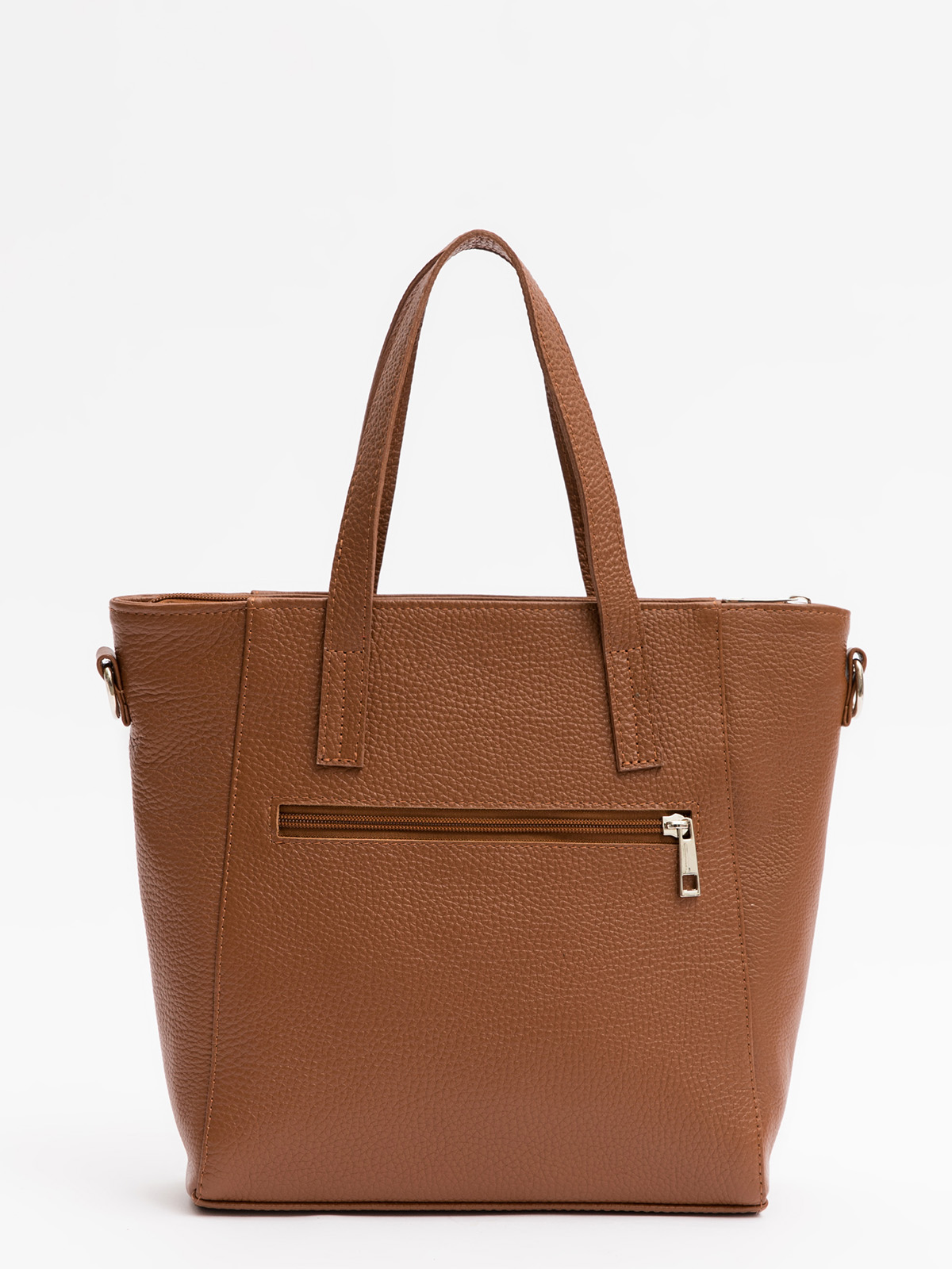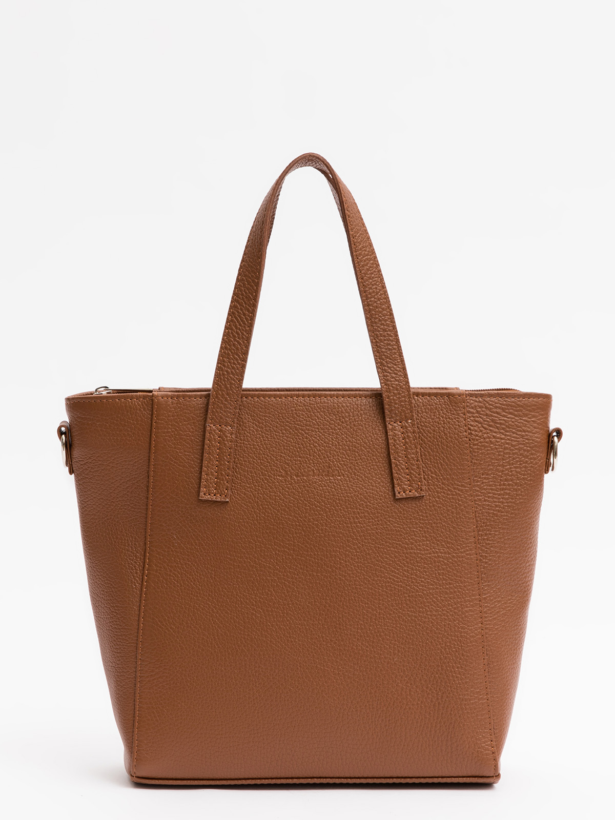 Элегантный кожаный тоут среднего размера с трапециевидным силуэтом, сужающимся книзу. Длинные настрочные ручки и съемный регулируемый ремень на карабинах предлагают несколько вариантов ношения. Внутри - три стандартных кармана для удобного хранения мелочей. Задний карман на молнии обеспечивает быстрый доступ к необходимым вещам. Стильное тиснение на передней части завершает лаконичный классический дизайн сумки.