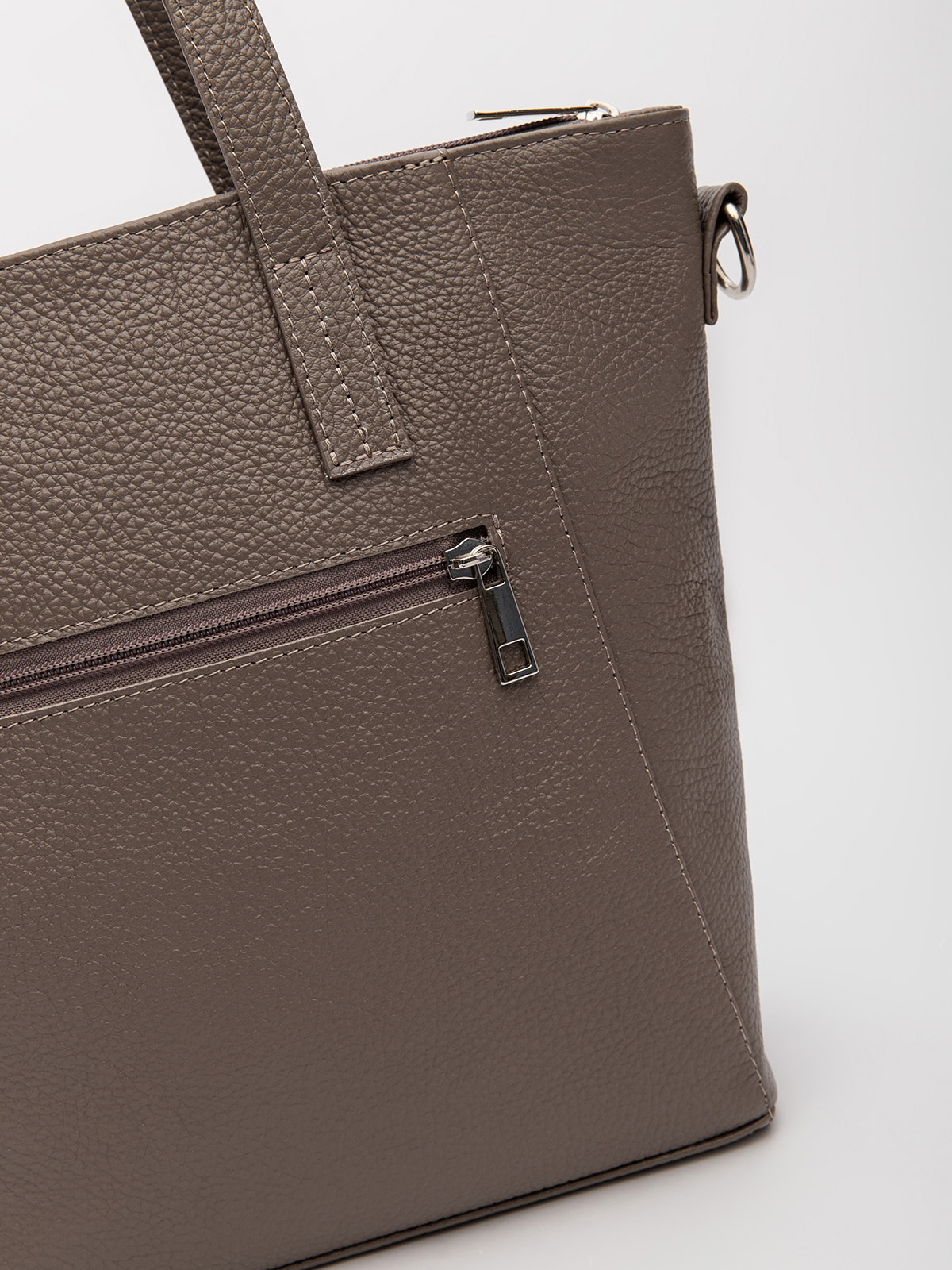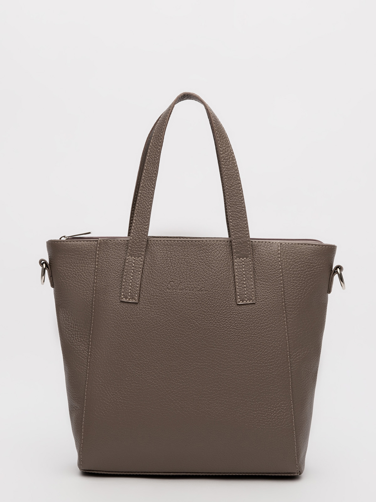 Элегантный кожаный тоут среднего размера с трапециевидным силуэтом, сужающимся книзу. Длинные настрочные ручки и съемный регулируемый ремень на карабинах предлагают несколько вариантов ношения. Внутри - три стандартных кармана для удобного хранения мелочей. Задний карман на молнии обеспечивает быстрый доступ к необходимым вещам. Стильное тиснение на передней части завершает лаконичный классический дизайн сумки.