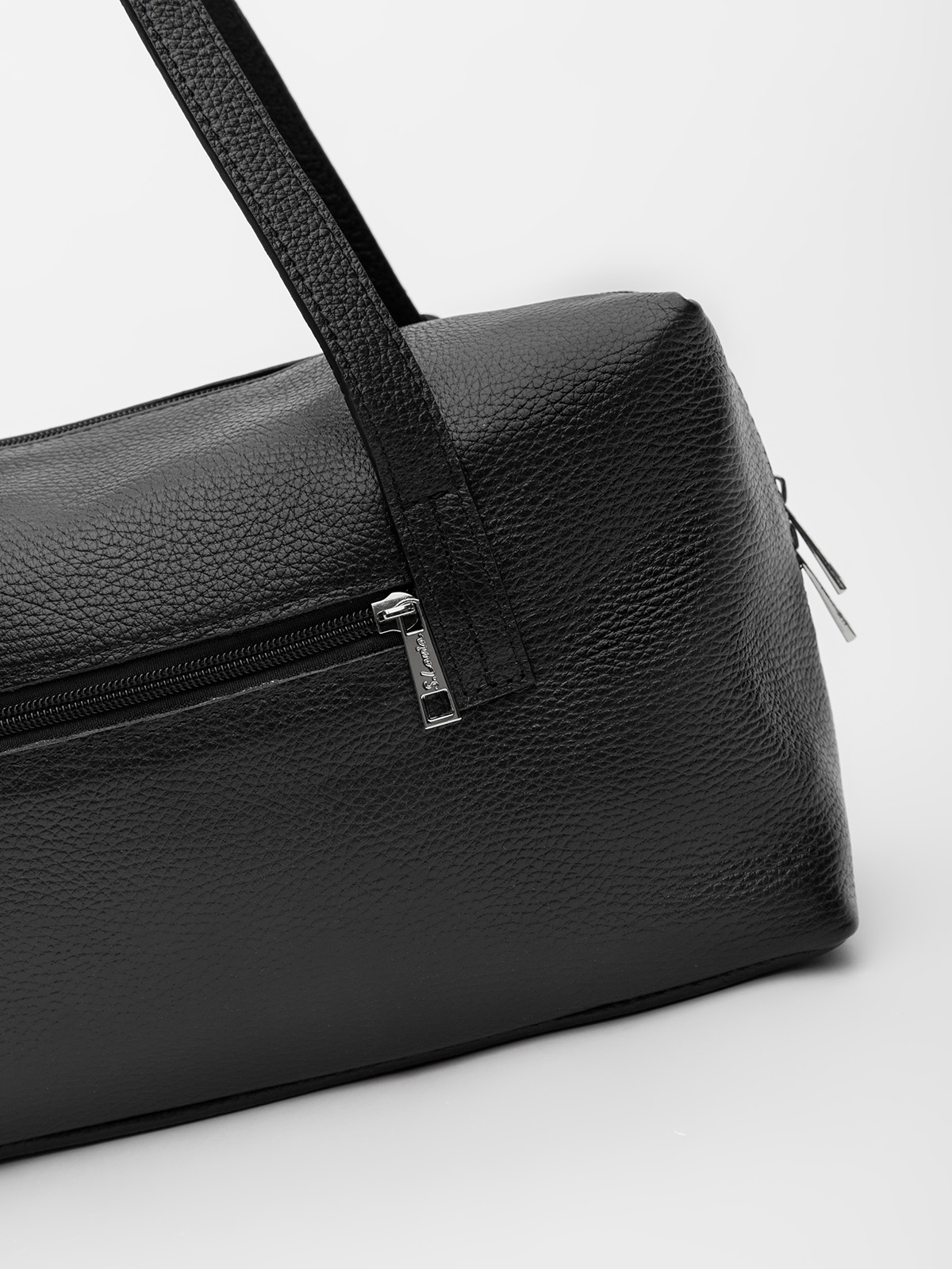 Стильный саквояж в модной форме "Еast-west" из натуральной кожи с вытянутым горизонтальным силуэтом. Регулируемые длинные ручки с пряжками позволяют носить сумку на плече или в руке. Внутри - два стандартных кармана для удобного хранения мелочей. Задний карман на молнии и тиснение на передней части добавляют практичности и элегантности. Идеальный аксессуар для тех, кто ценит трендовый дизайн и качественные материалы.