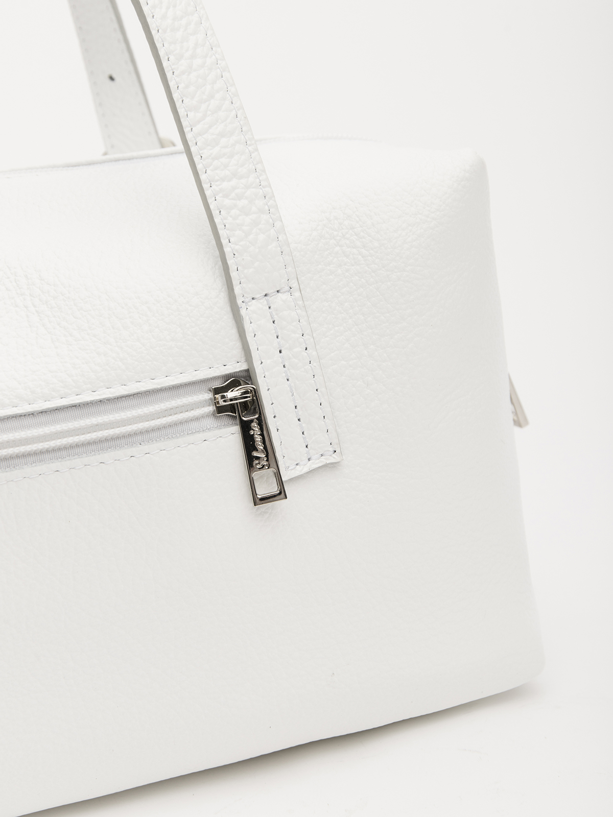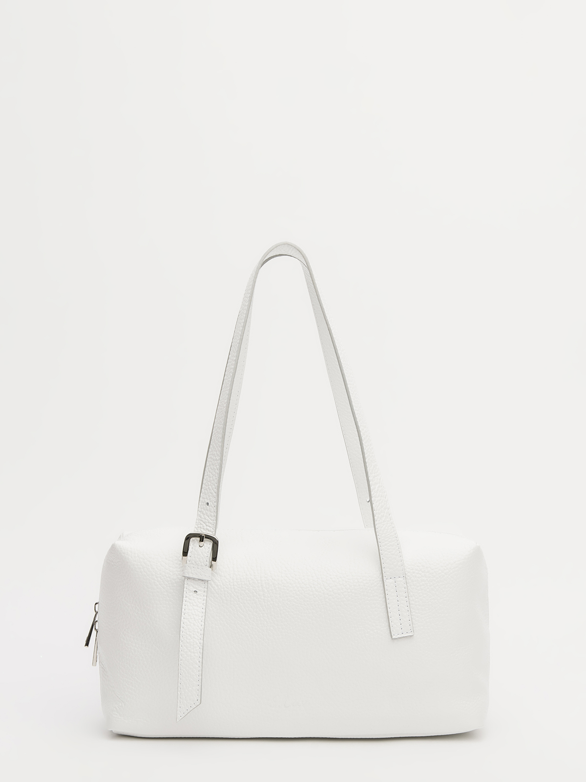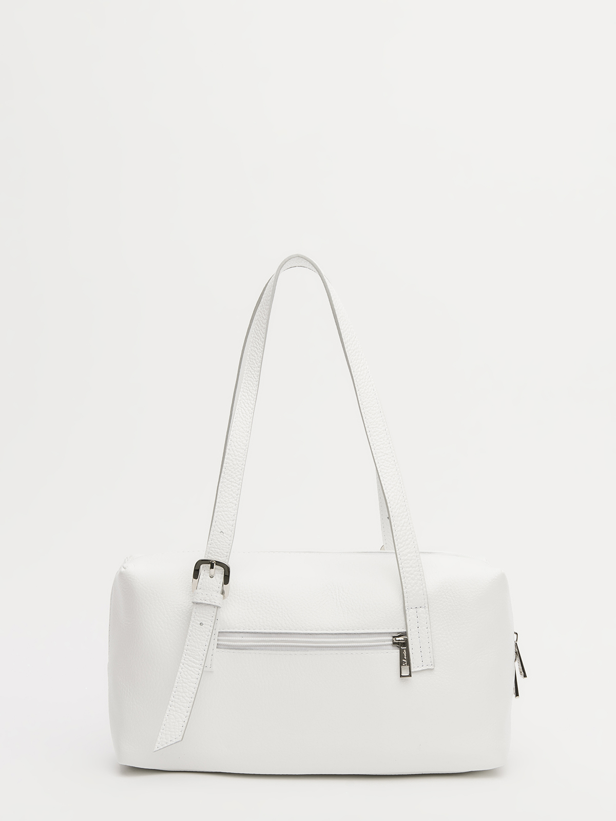 Стильный саквояж в модной форме "Еast-west" из натуральной кожи с вытянутым горизонтальным силуэтом. Регулируемые длинные ручки с пряжками позволяют носить сумку на плече или в руке. Внутри - два стандартных кармана для удобного хранения мелочей. Задний карман на молнии и тиснение на передней части добавляют практичности и элегантности. Идеальный аксессуар для тех, кто ценит трендовый дизайн и качественные материалы.