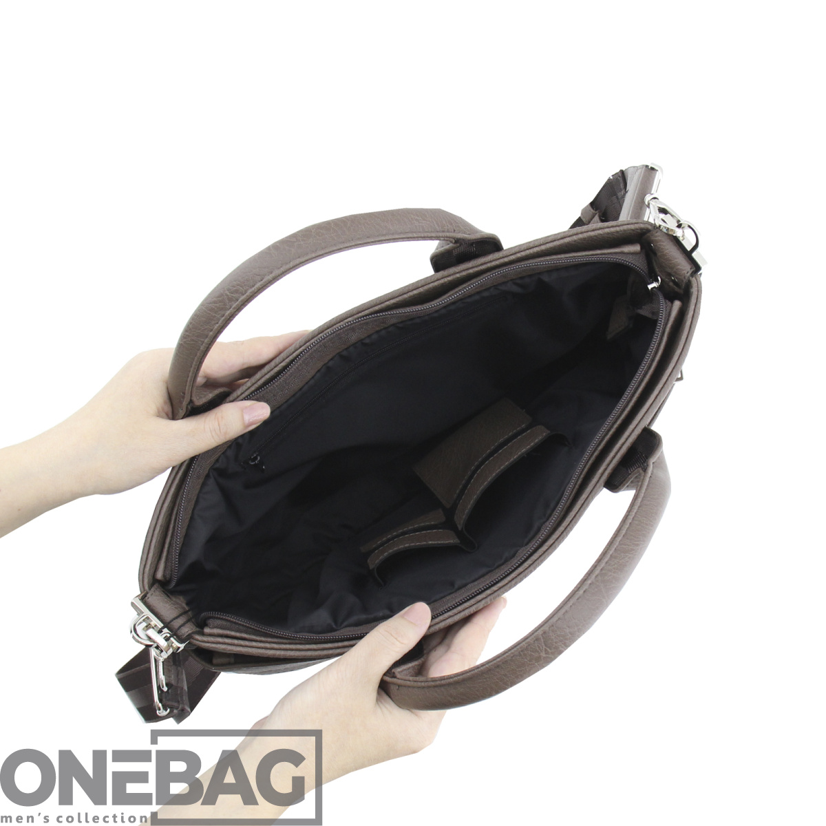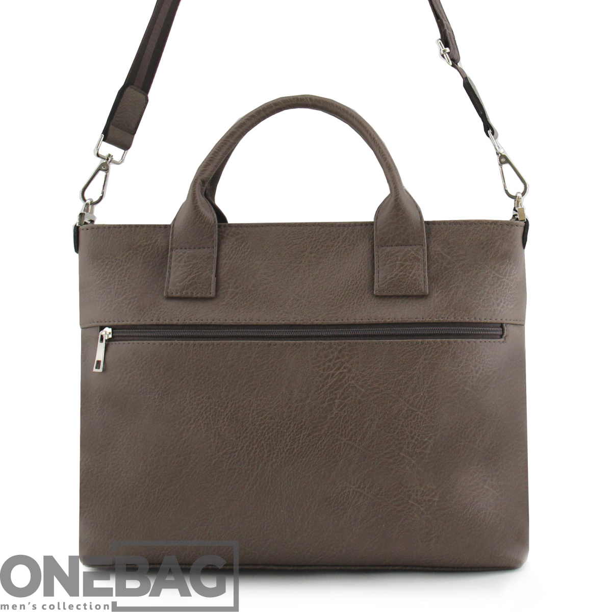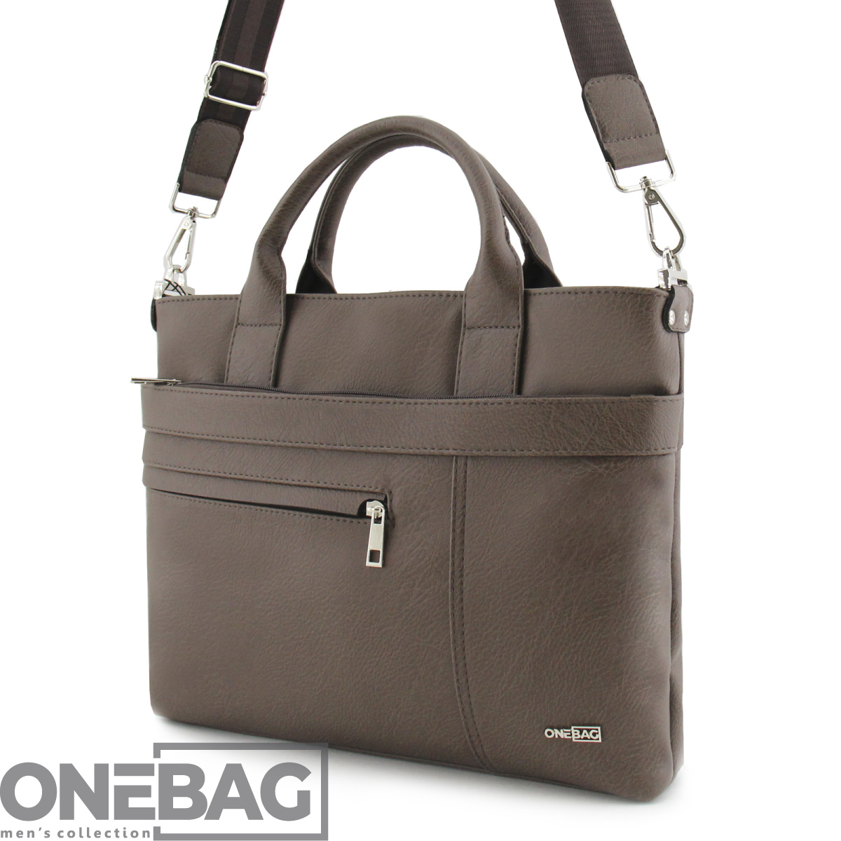 Сумка мужская ONEBAG  на коротких ручках и регулируемом плечевом ремне(min:975, max:1575). Одно отделение на молнии. Задняя стенка: карман на молнии. Передняя стенка: дополнительное отделение на молнии и карман на молнии. Внутри:  карман на молнии и два дополнительных кармана на резинке. Вмещает формат А4.