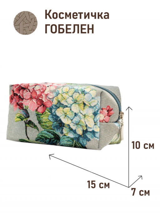 1042 Косметичка Гортензия серая 15х10х7см 2520290