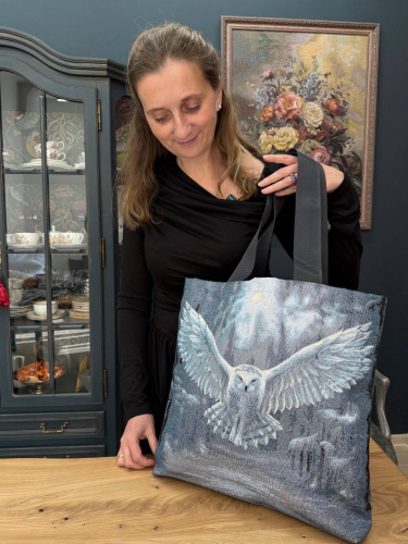 Затем специалисты нашего швейного производства бережно отшивают гобелен, превращая его в готовые изделия, которые уже более десяти лет радуют наших покупателей.