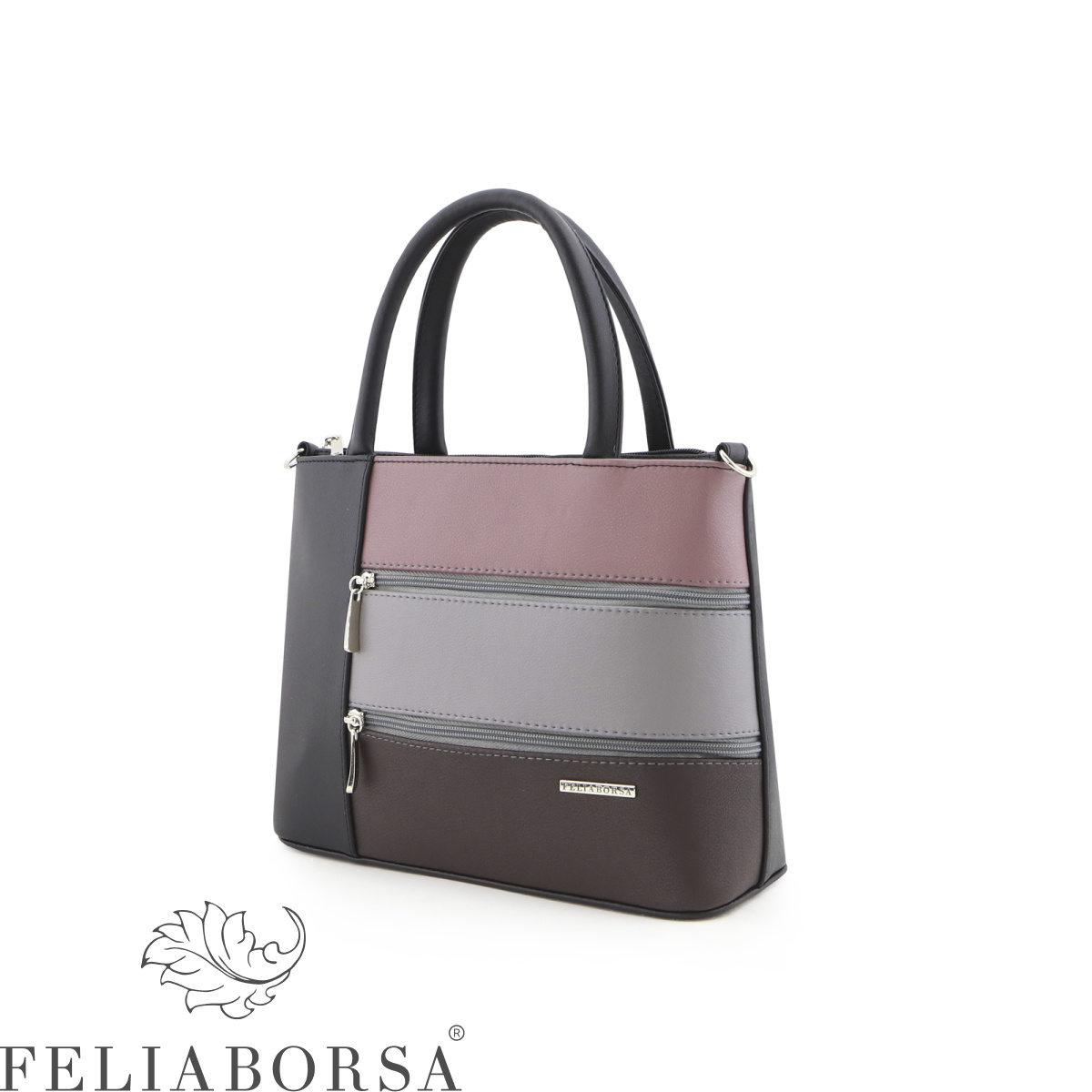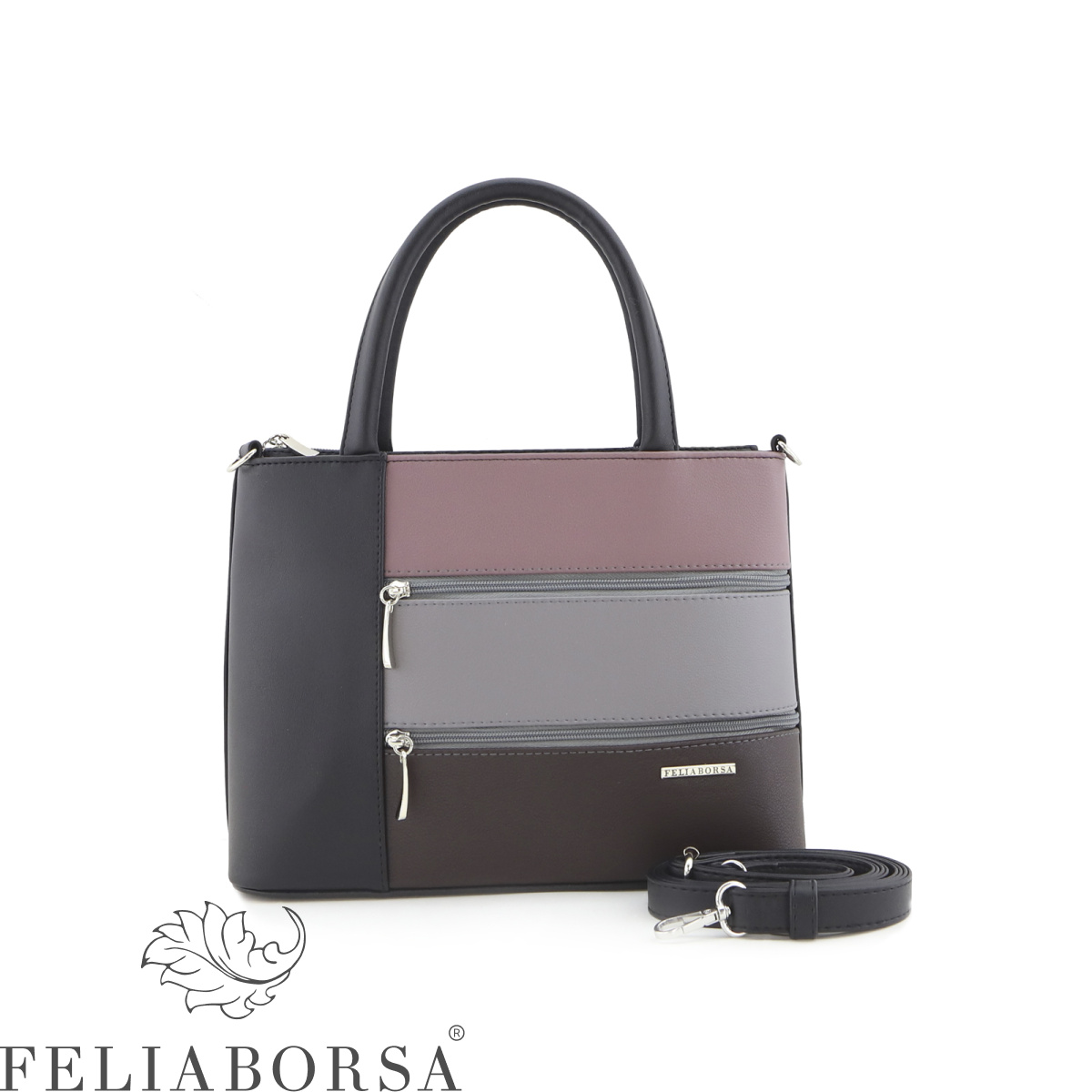 Сумка женская Feliaborsa, полужесткая на двух ручках и  регулируемом ручкоремне. Одно отделение на молнии. Передняя стенка: два кармана на молнии.Задняя стенка: карман на молнии. Внутри открытый карман, карман на молнии, карман для документов.