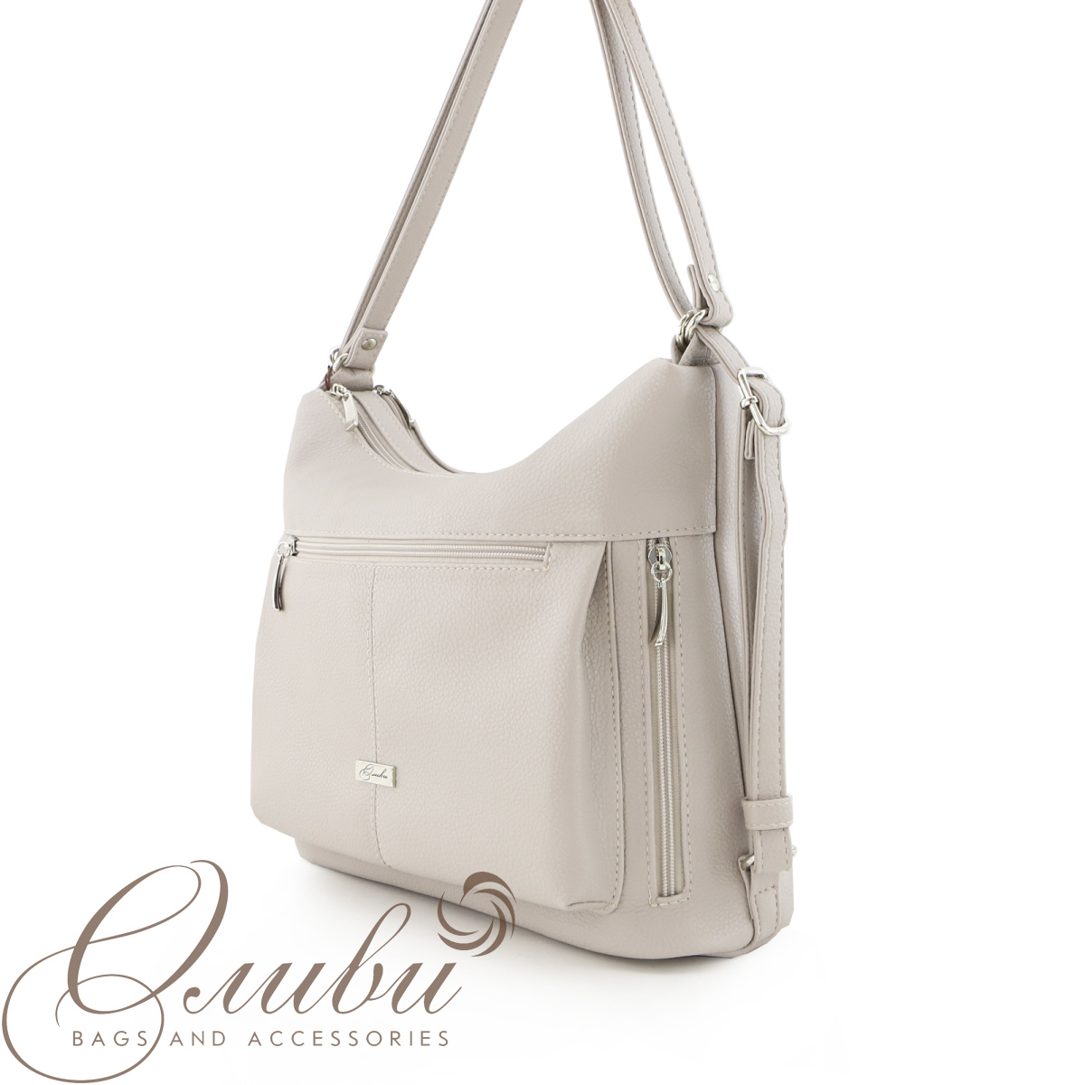 Сумка-рюкзак женская Оливи, мягкая на двух регулируемых ручках. Два отделения на молнии.Внутри: карман для документов на молнии, открытый карман, закрытый карман. Передняя стенка - три кармана на молнии. Задняя стенка - карман на молнии