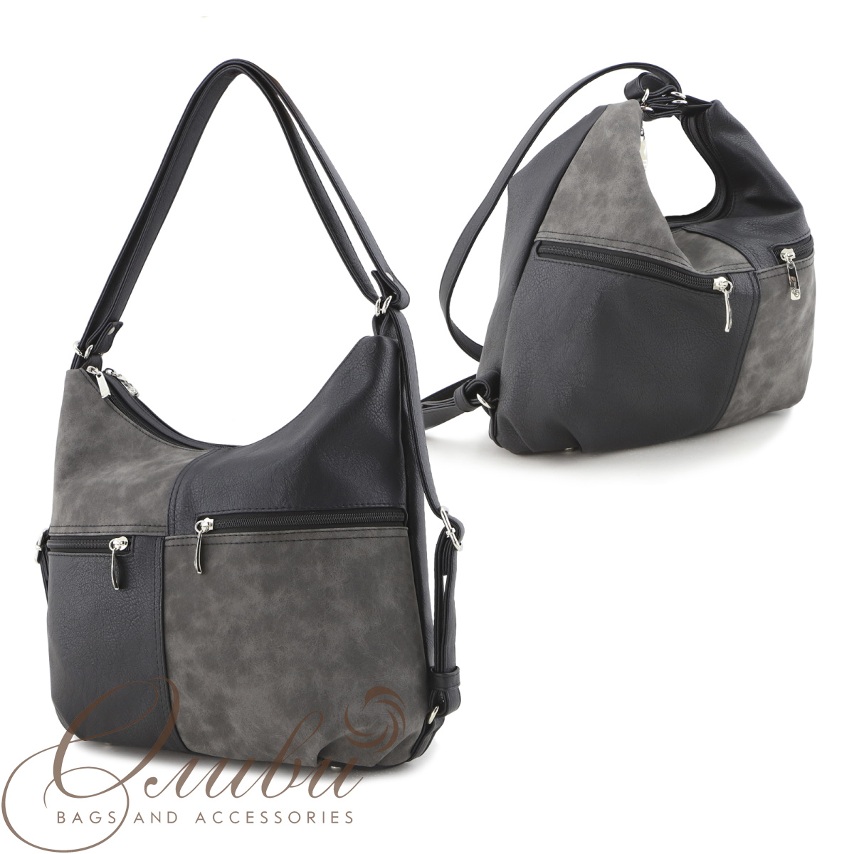Сумка-рюкзак женская Оливи, мягкая на двух регулируемых ручках. Два отделения на молнии.Внутри: карман для документов на молнии, открытый карман, закрытый карман. Передняя стенка - два кармана на молнии. Задняя стенка - карман на молнии