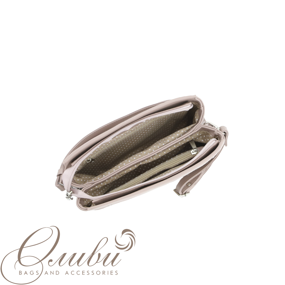 Сумка женская Оливи, мягкая на съемном регулируемом ручкоремне. Два отделения на молнии. Задняя стенка: карман на молнии. Внутри: карман на молнии, открытый карман, карман для документов на молнии.