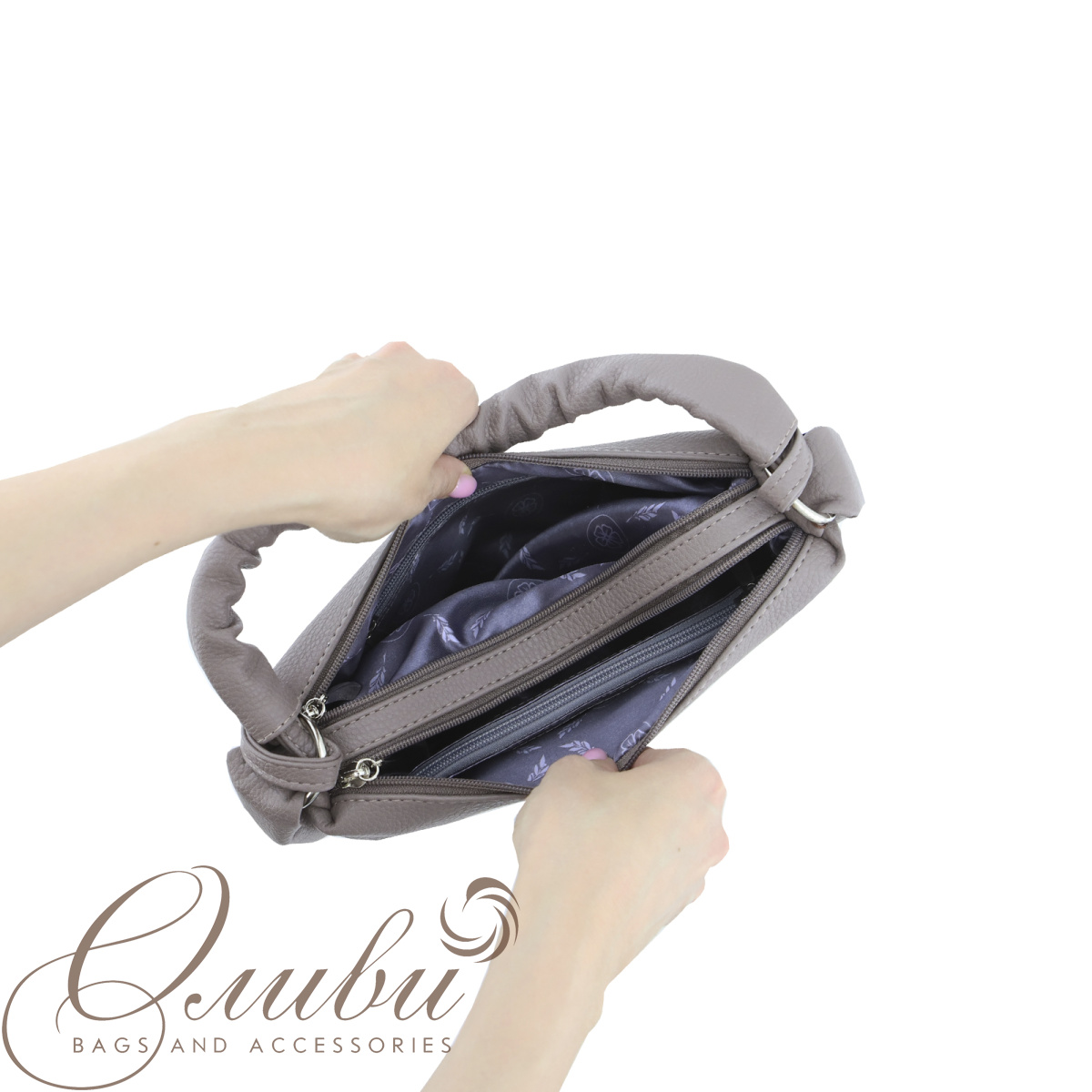 Сумка женская Оливи, мягкая на одной ручке и регулируемом ручкоремне. Два отделения на молнии. Внутри: карман-перегородка на молнии, карман на молнии. Задняя стенка: карман на молнии.