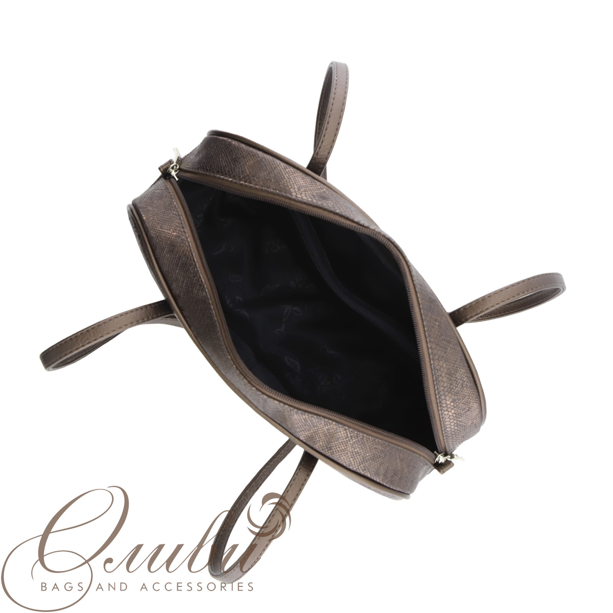 Сумка женская Оливи, полужесткая на двух ручках .Одно отделение на молнии. Внутри: карман-перегородка на молнии, карман на молнии, два открытых кармана. Задняя стенка: карман на молнии.